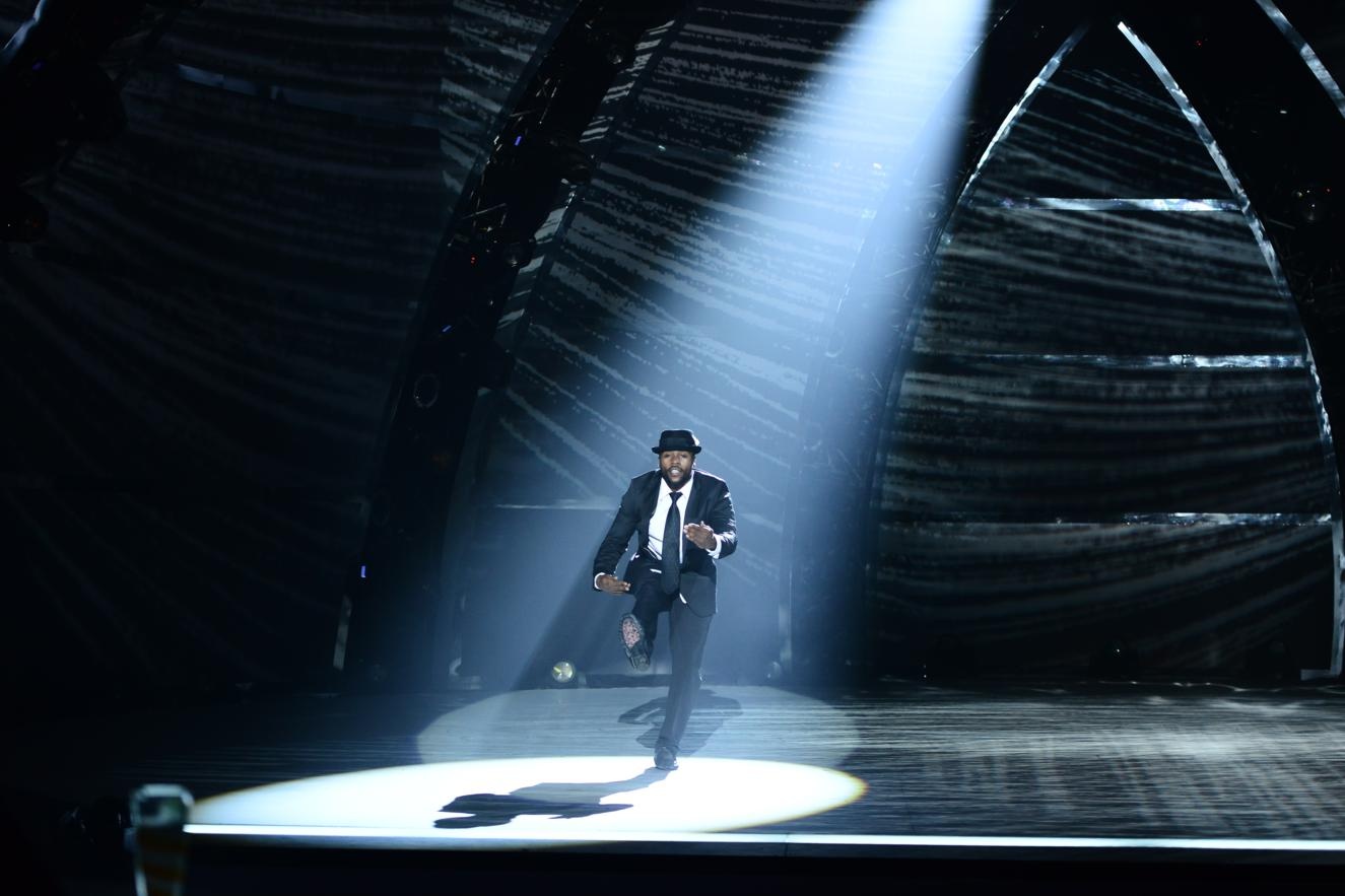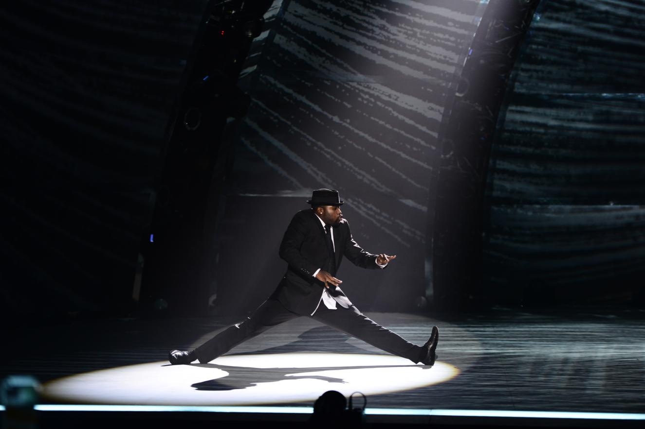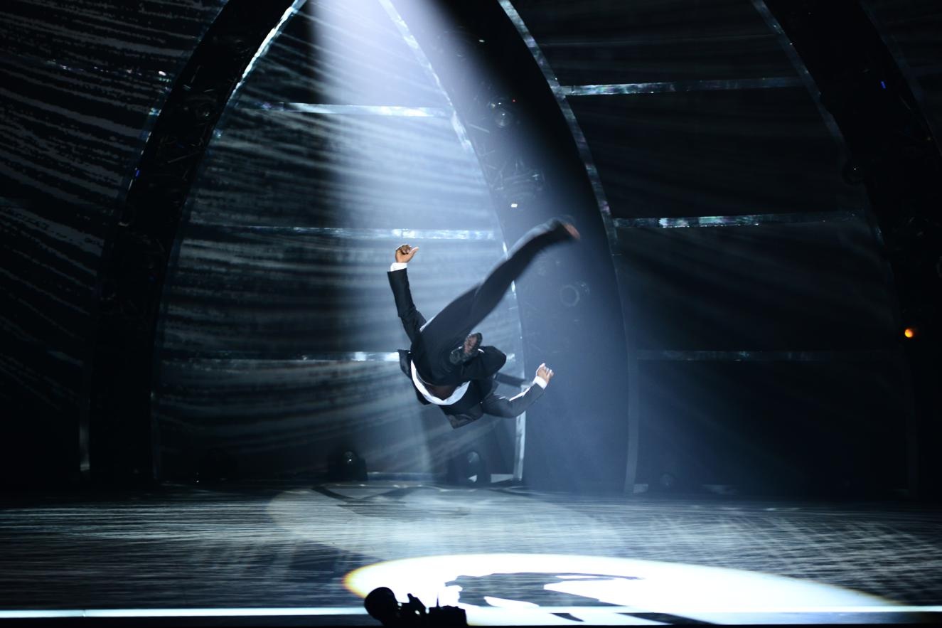| Joshua mang đến tiết mục solo độc đáo đậm chất giải trí. Vốn thần tượng Michael Jackson nên những động tác của Joshua phảng phất dáng dấp của ông hoàng nhạc pop. Những cú xoạc chân và bay người của anh làm "no mắt" người xem. |