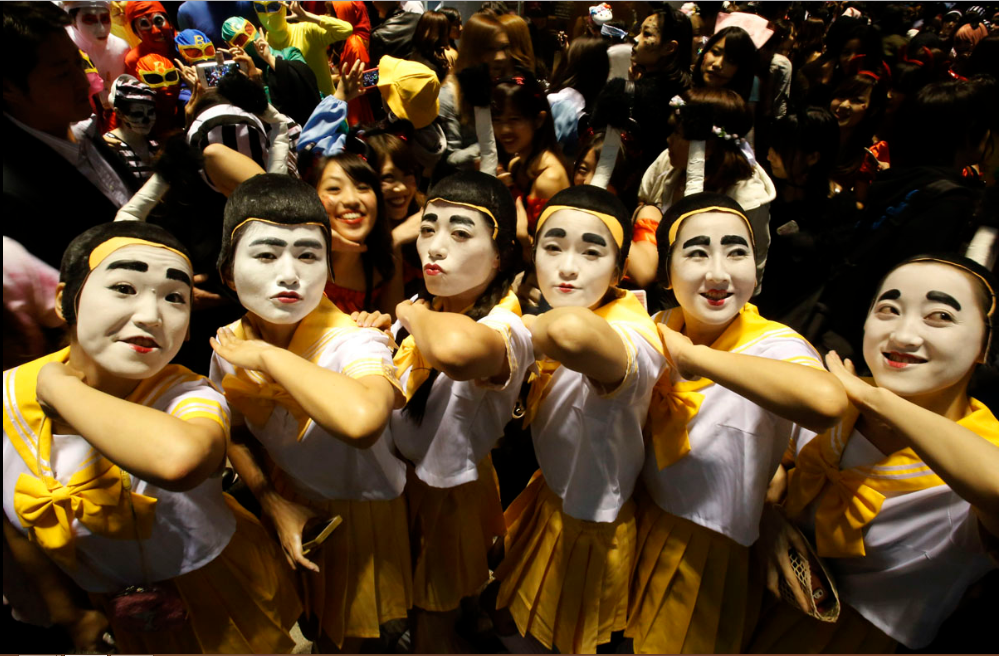 | Giới trẻ Nhật Bản hóa trang thành những nhân vật kỳ lạ, vui tươi. Ảnh: Reuters |