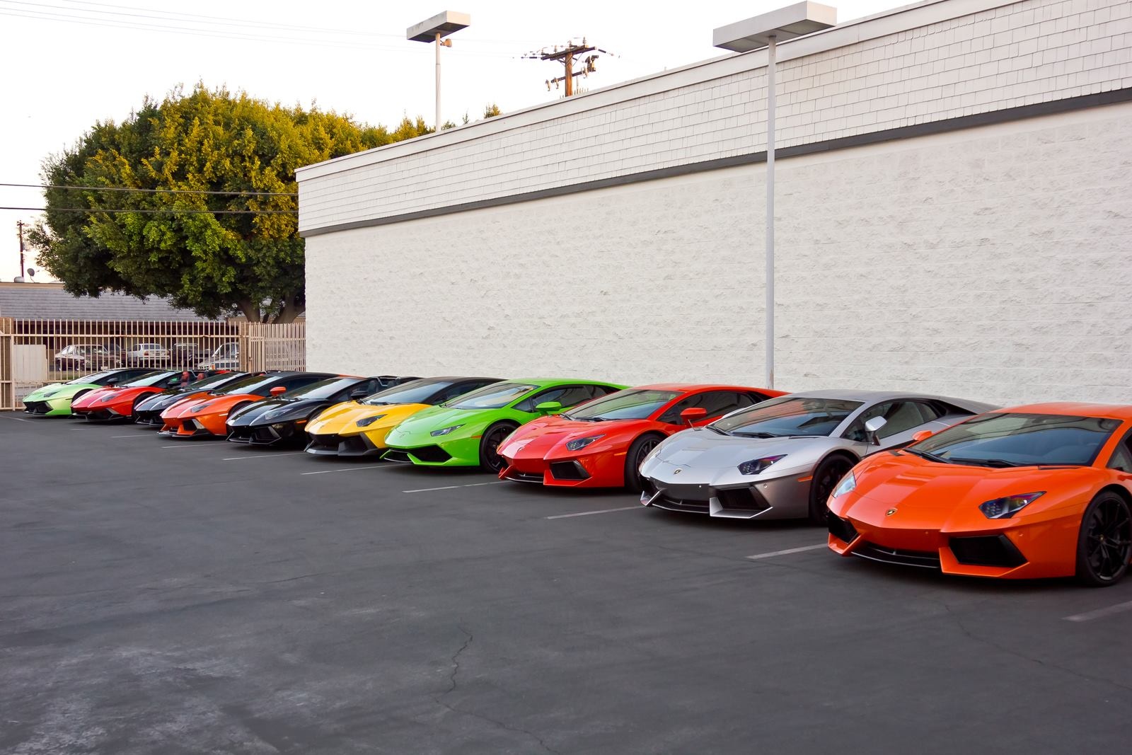 | Một góc sặc sỡ những siêu xe Lamborghini tham gia sự kiện. |