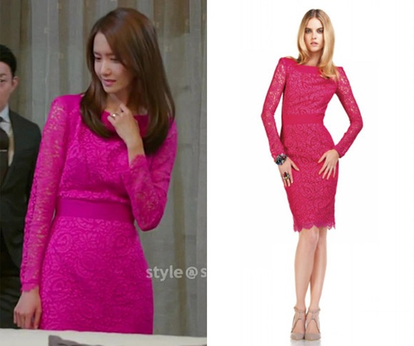 | Chiếc váy ren với màu hồng cánh sen làm nổi bật vóc dáng nhỏ nhắn, cân đối được Nam Da Jung mặc khi tham gia buổi tiệc cùng Kwon Ryul. Chiếc váy có giá 924 USD (khoảng 19,6 triệu đồng) này nằm trong BST thu - đông 2013 của hãng thời trang Blumarine. |