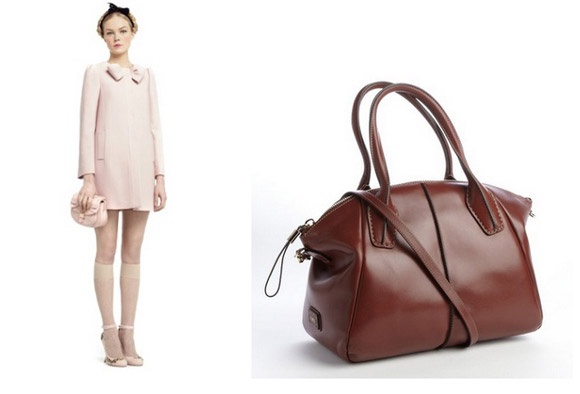 | Áo dạ vai bồng Valentino và túi xách TOD’S. |