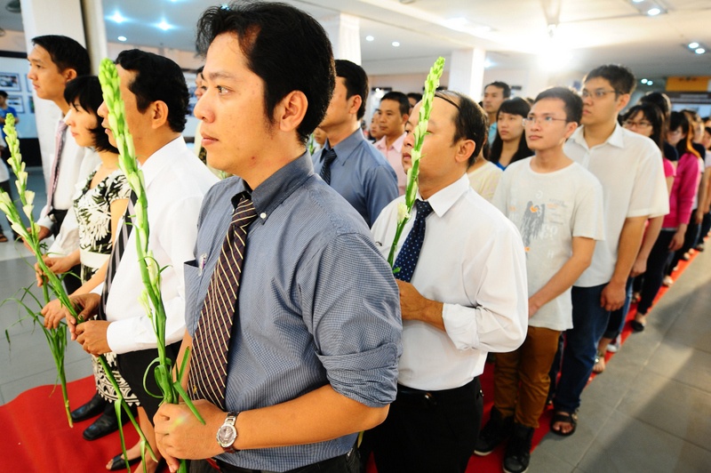 | Xếp thành hàng dài dành một phút tưởng niệm Đại tướng. |