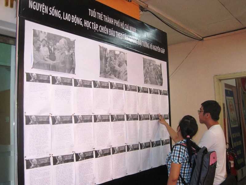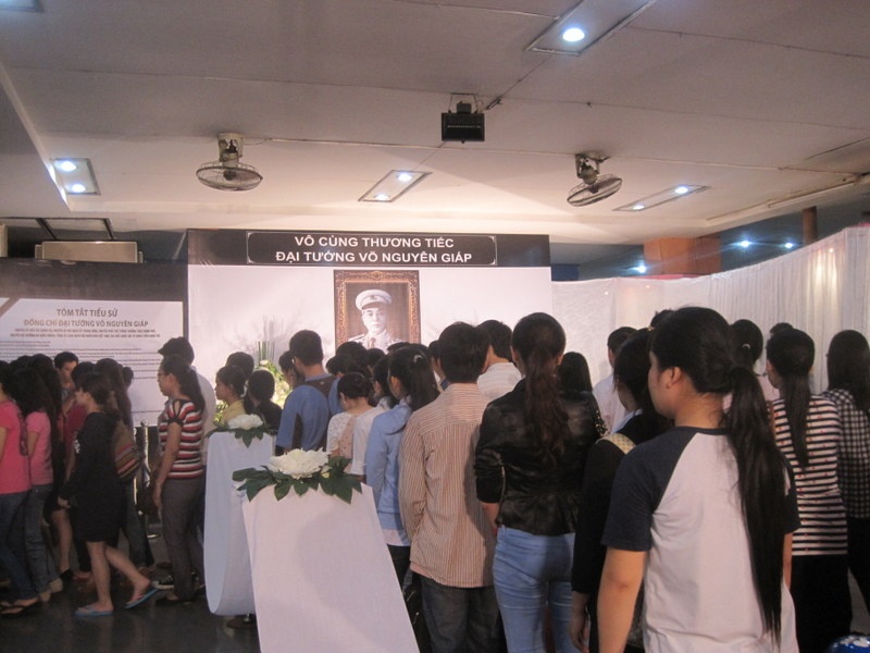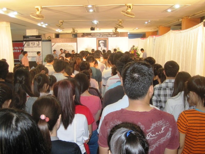 Từ 12h trưa 11/10, hàng ngàn bạn trẻ, đoàn viên thanh niên cùng người dân TP.HCM đã đội mưa đến Nhà văn hóa Thanh Niên để ghi lại những cảm xúc, suy nghĩ, bày tỏ lòng thành kính đối với Đại tướng.