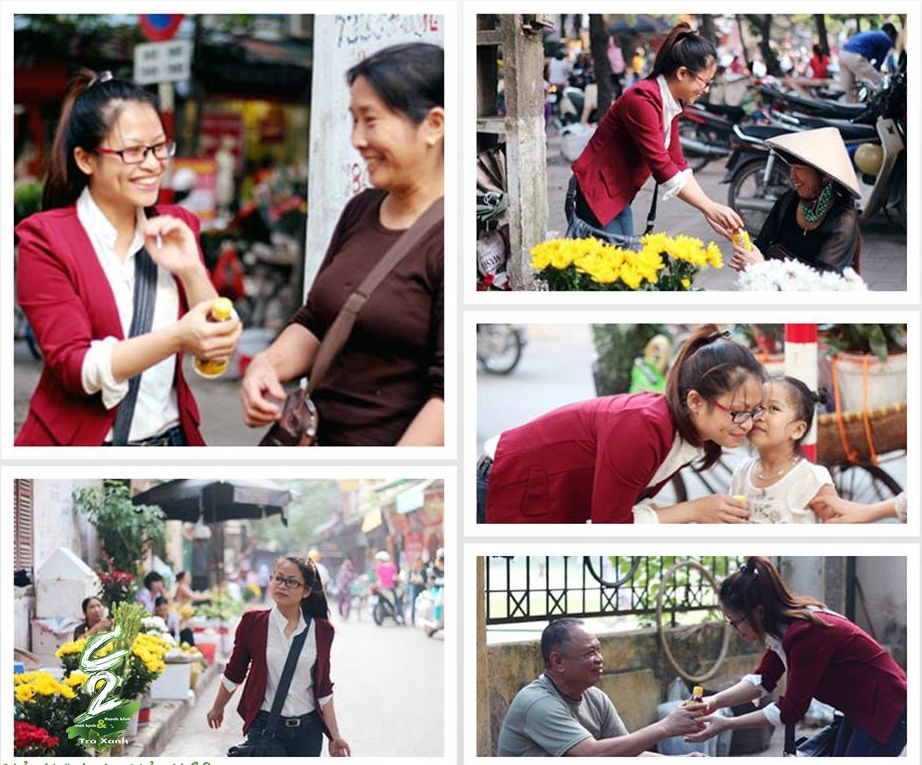 Sinh viên Bùi Kiều Anh ở Hà Nội gửi bức ảnh rất ý nghĩa về 1 chuỗi những hành động nho nhỏ nhưng mang lại niềm vui lớn cho mọi người. Kiều Anh chia sẻ: ”Mình đang đi dạo thì gặp những cô chú buôn bán trong khu chợ gần nhà có vẻ mệt mỏi & khát nước nên đã ghé vào quán mua vài chai C2 ra biếu cho họ. Trong lúc đang “phân phát” C2 cho mọi người, mình chợt thấy có 1 em bé rất xinh nhìn mình ngơ ngác, mình thấy yêu quá cũng tặng em 1 chai luôn. Mọi người rất vui, còn về phần mình thì thấy vui gấp bội phần vì mang lại những niềm vui nho nhỏ cho mọi người”.