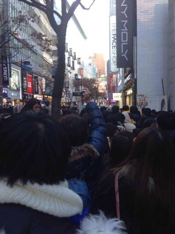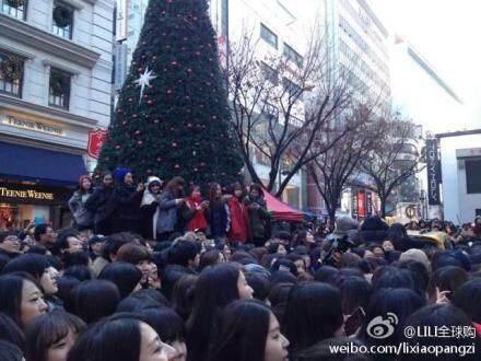 | Bên ngoài có hàng ngàn fan xếp hàng dài cả con phố. |