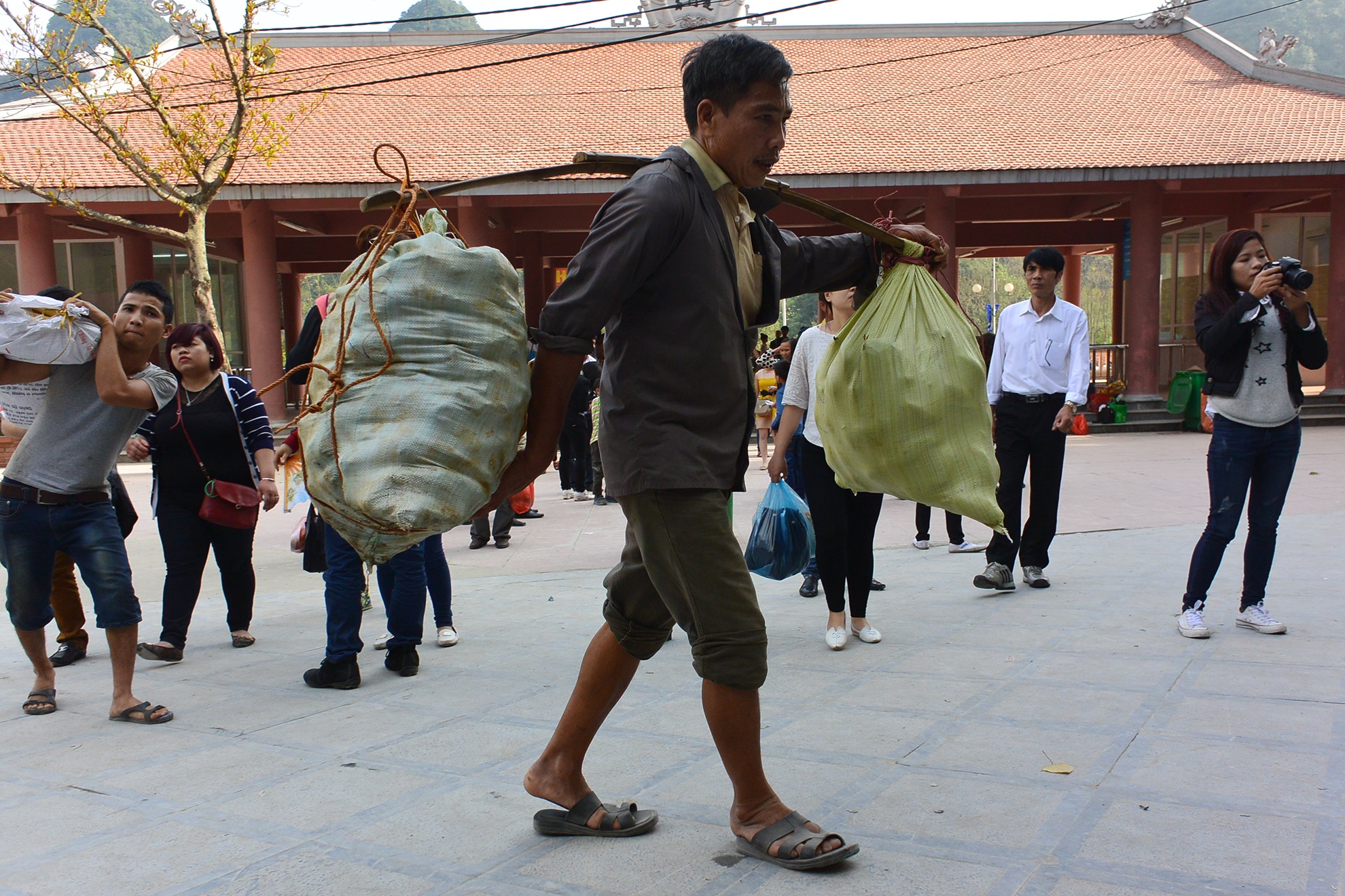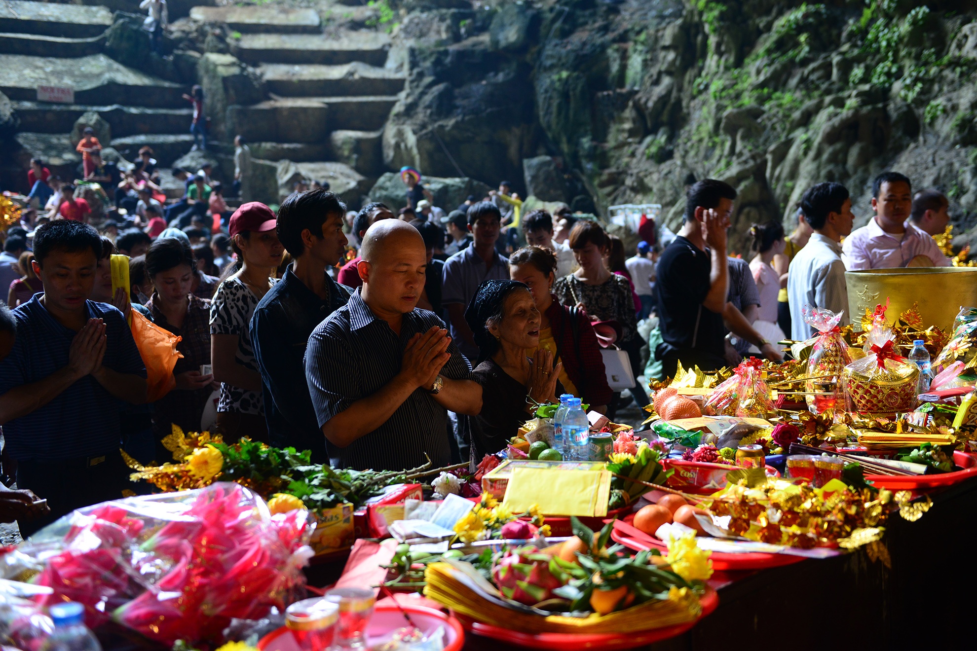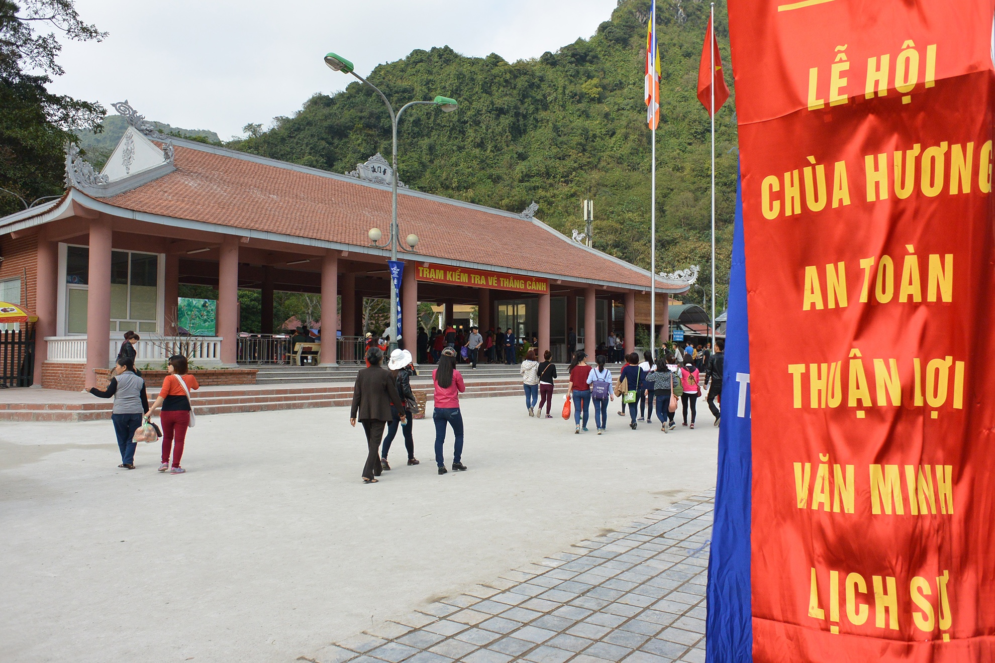 | Khu vực sân chùa và đường dẫn lên động Hương Tích khá thông thoáng sạch sẽ, không còn cảnh người dân xả rác bừa bãi như nhiều năm trước. |