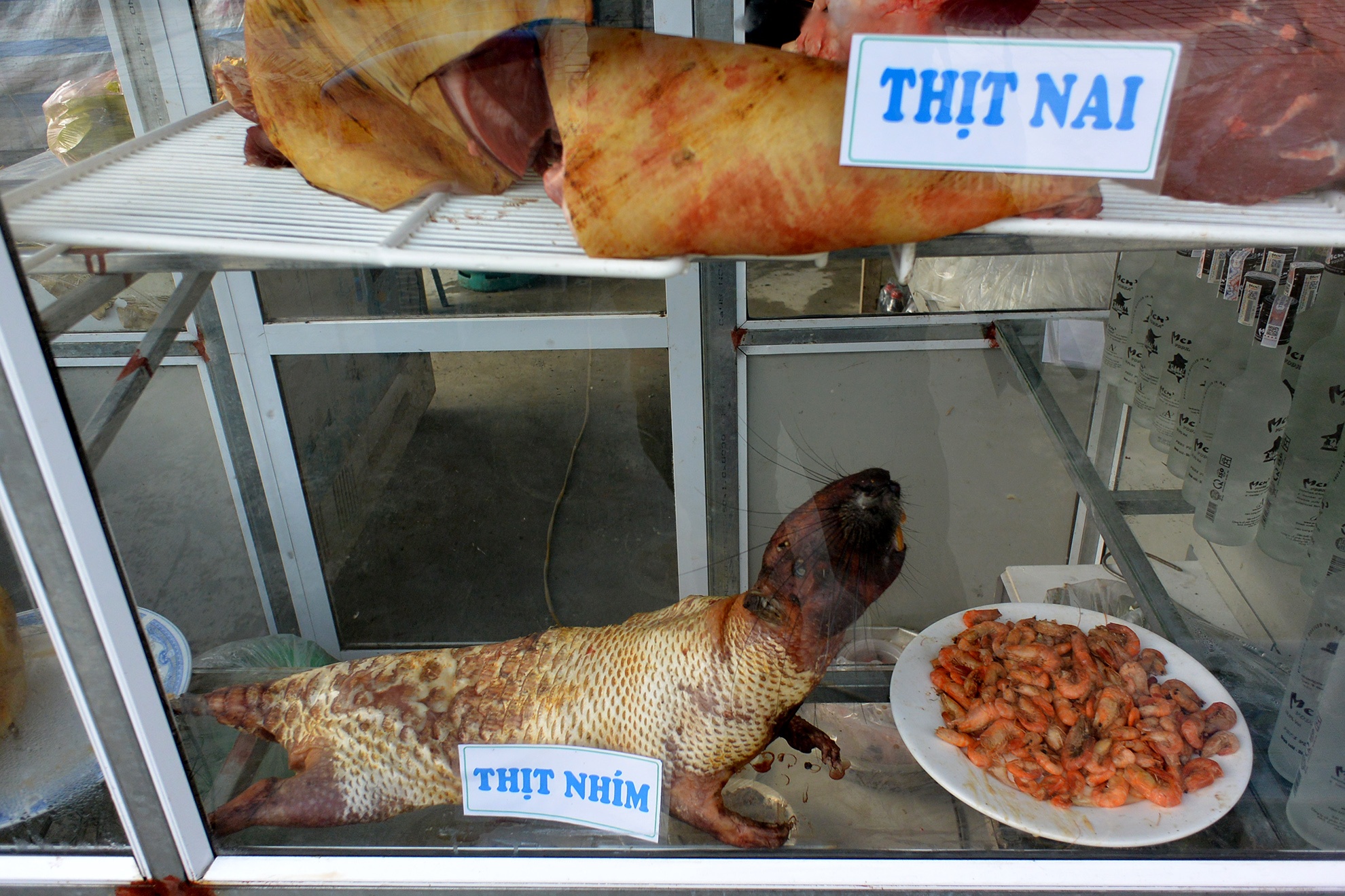 | Một số ít quán ăn ngoài cổng soát vé vẫn bày bán công khai các loại thịt thú với giá 350.000 - 500.000 đồng/kg hoặc 200.000 đồng/đĩa tuỳ loại. |
