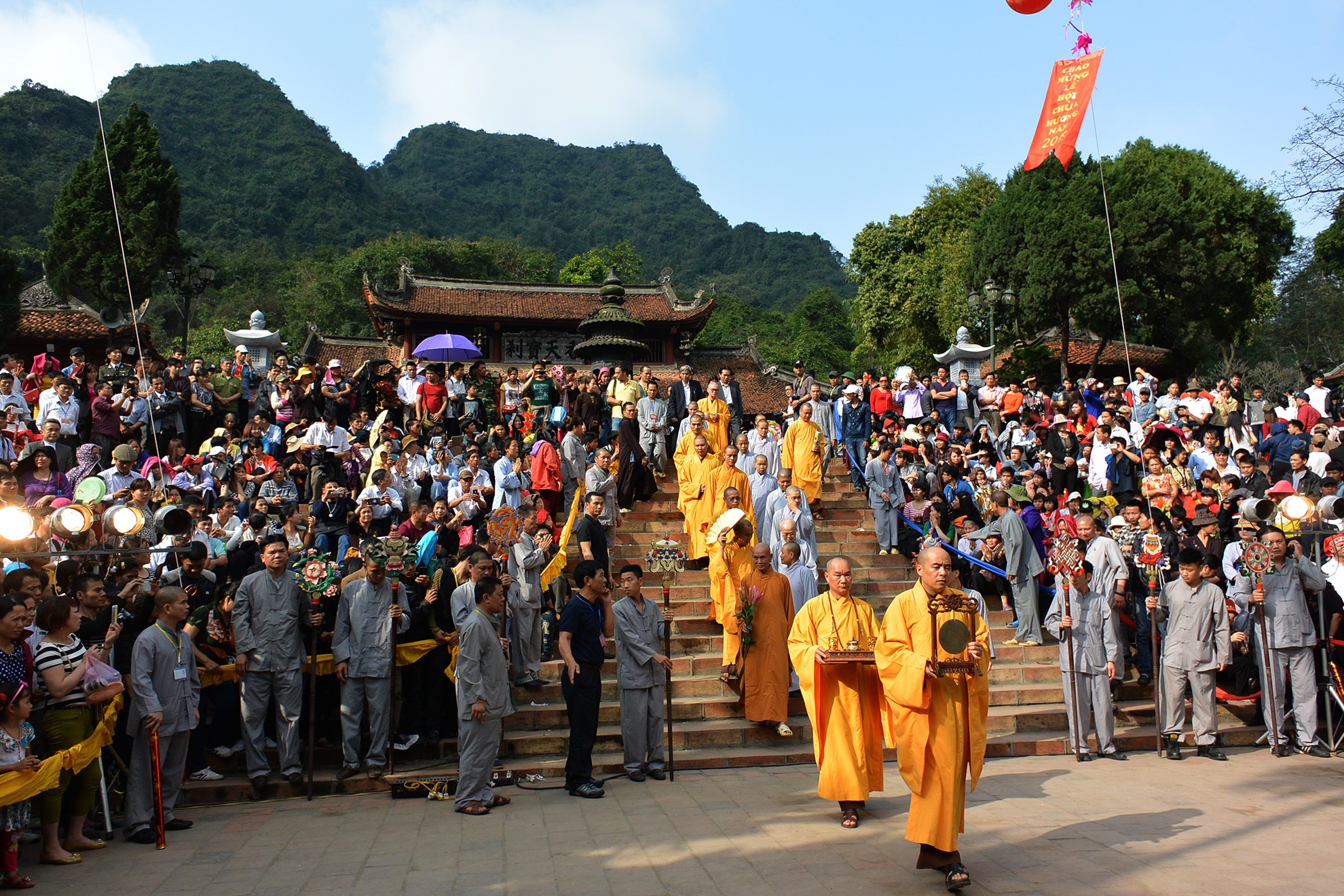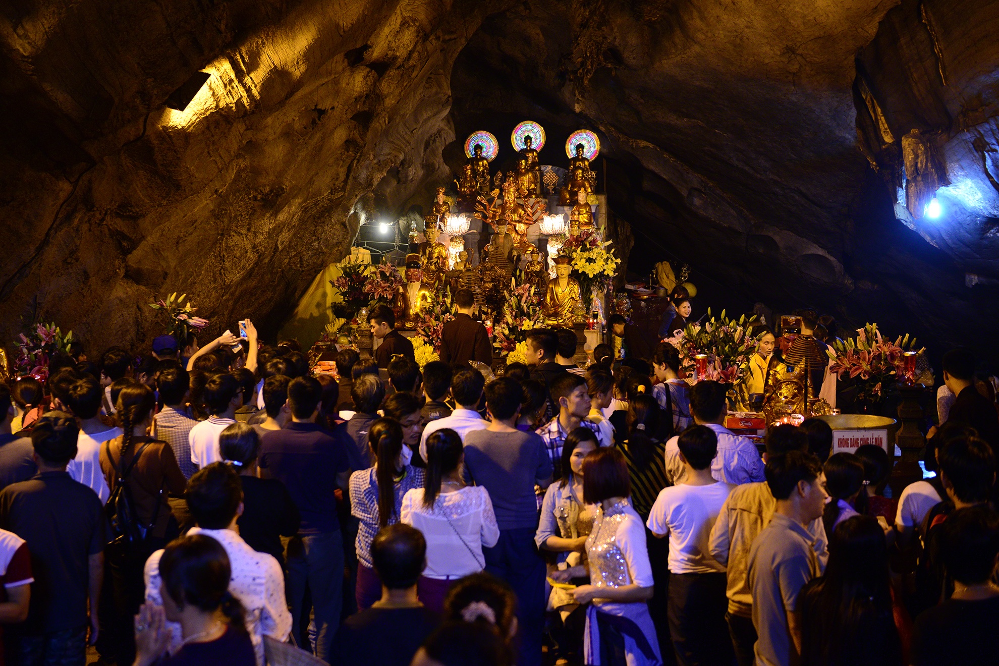 Sáng 24/2, hàng nghìn du khách thập phương đã đổ về nơi được mệnh danh là "Nam thiên đệ nhất động" vãn cảnh và lễ chùa trong ngày khai mạc.