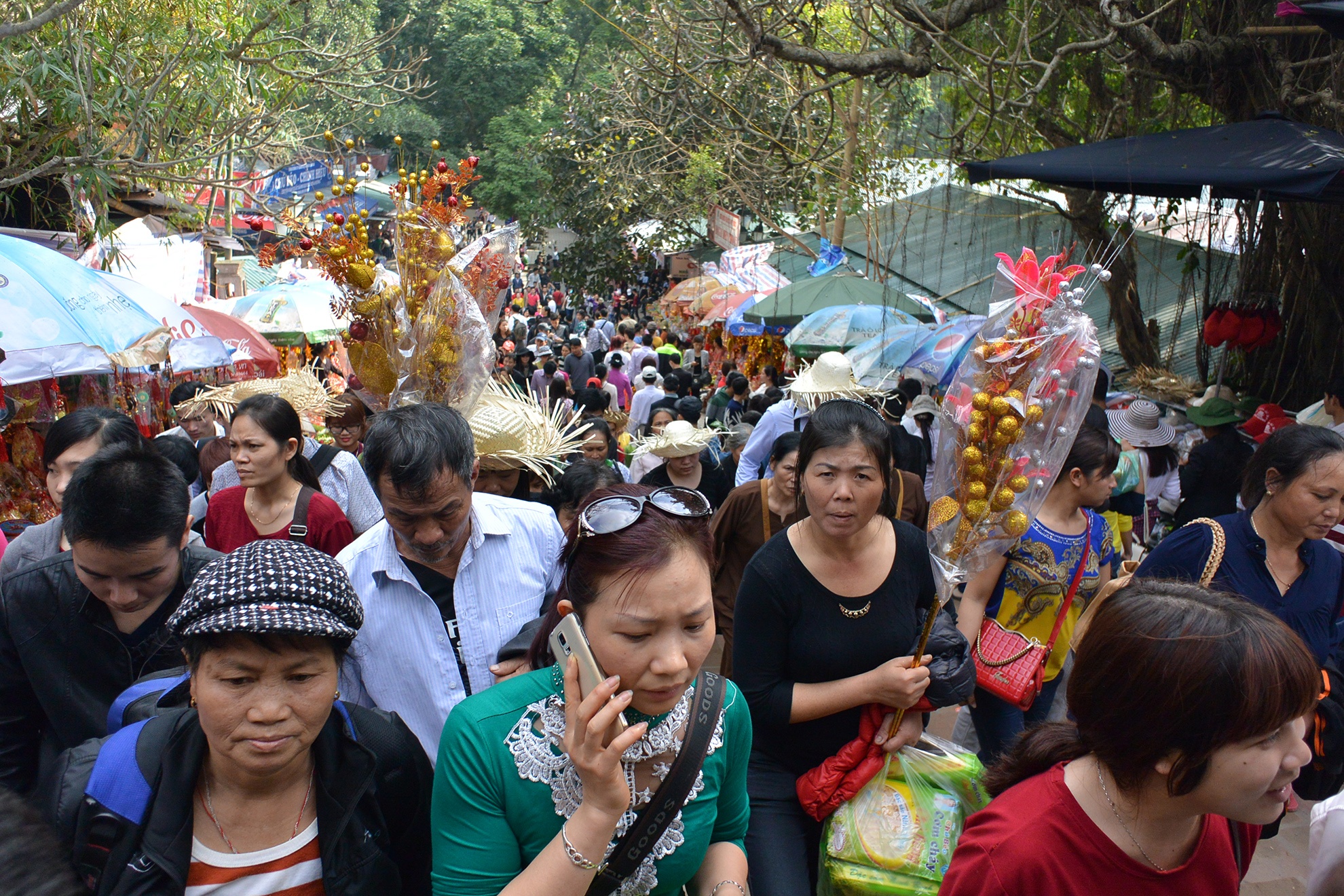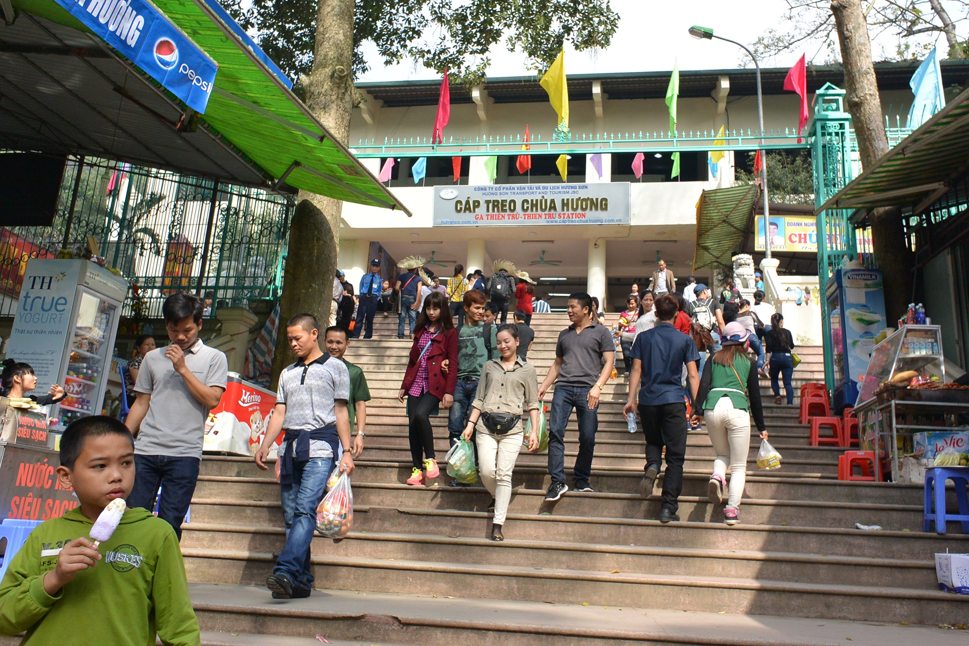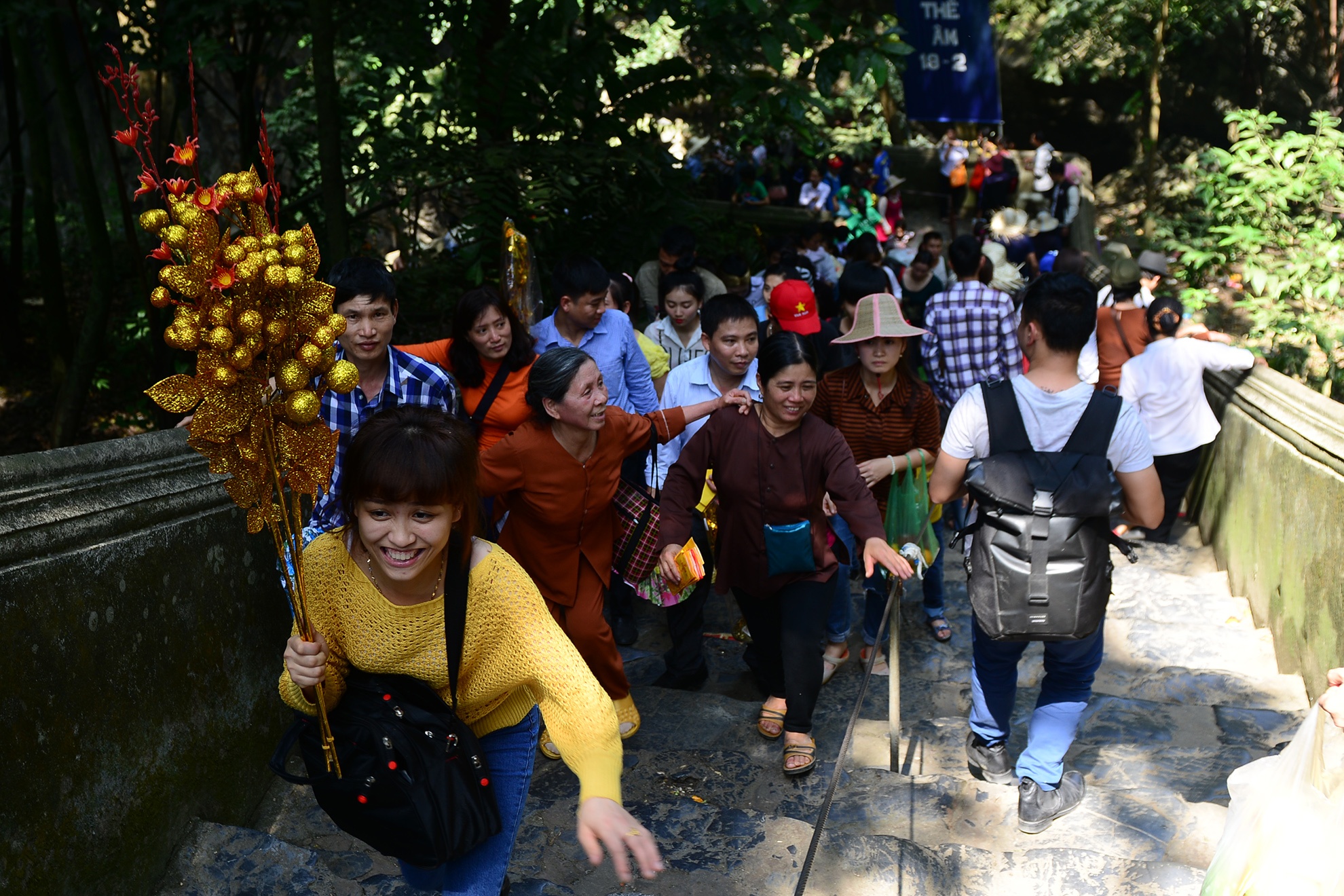| Lối lên động Hương Tích lúc 9h30 đông nhưng không quá tải như các năm trước. |