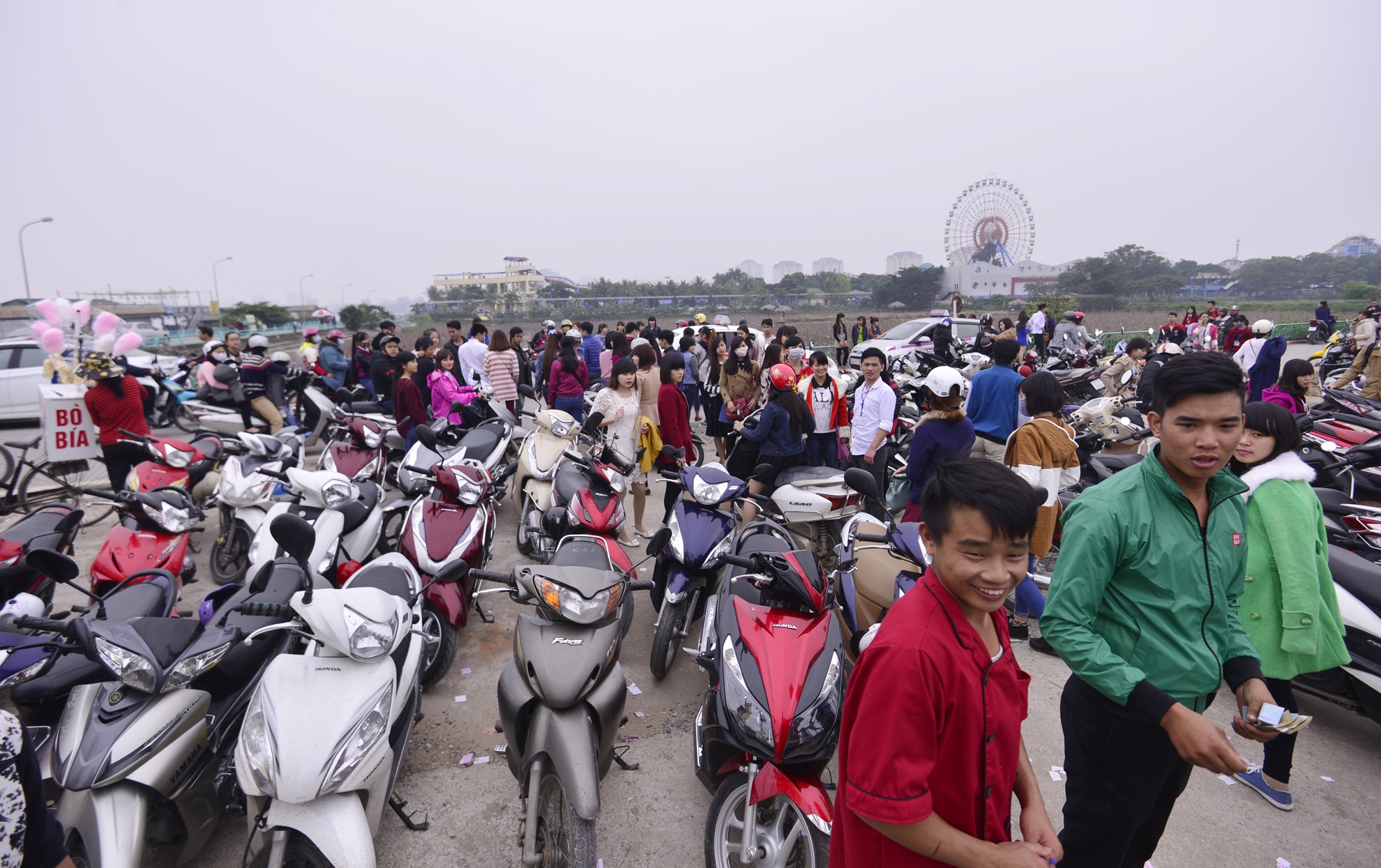 | Nhân dịp này, bãi gửi xe máy tự phát mọc lên phía ngoài cổng kinh doanh và thu giá 10.000 đồng/chiếc.