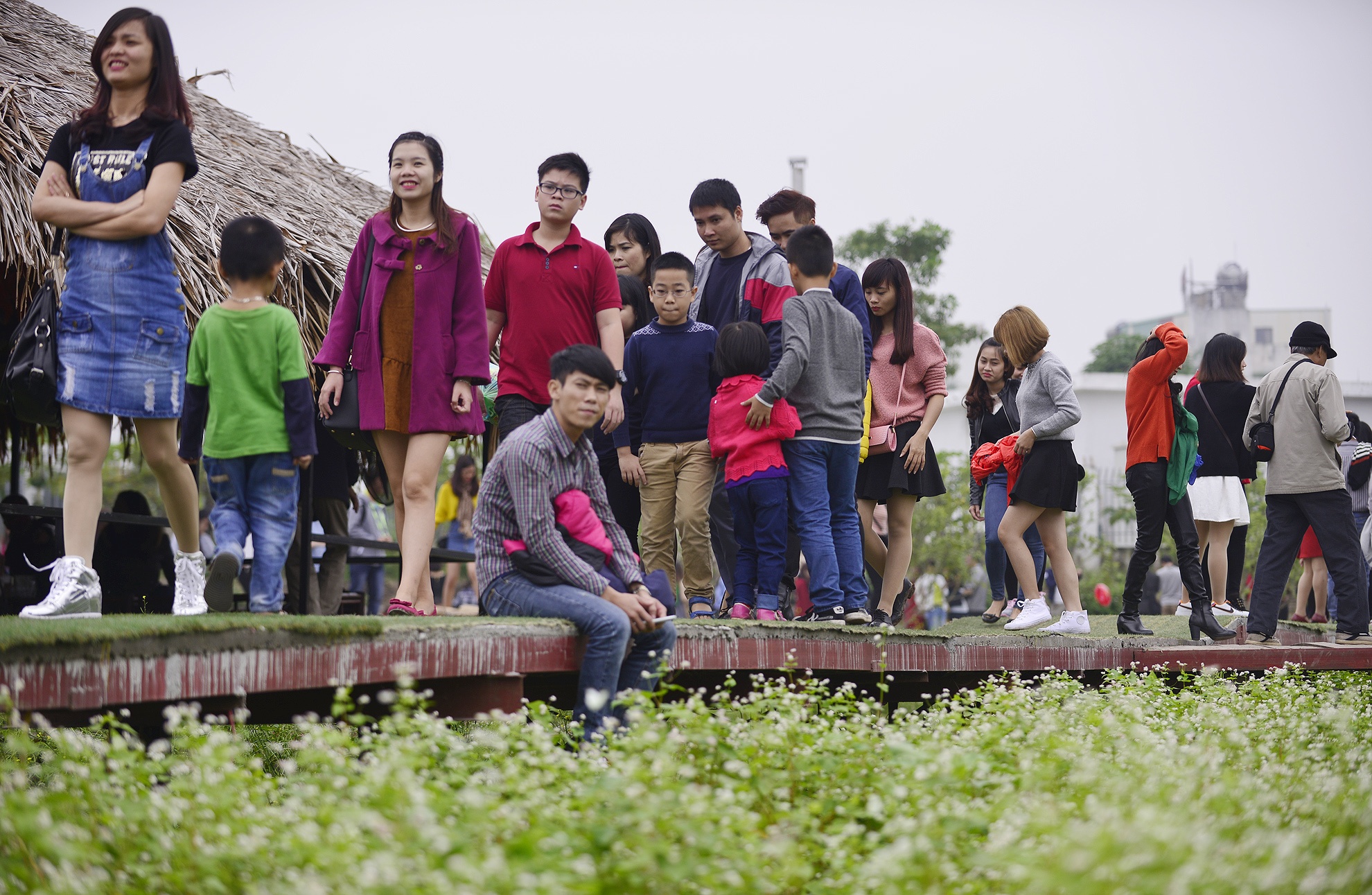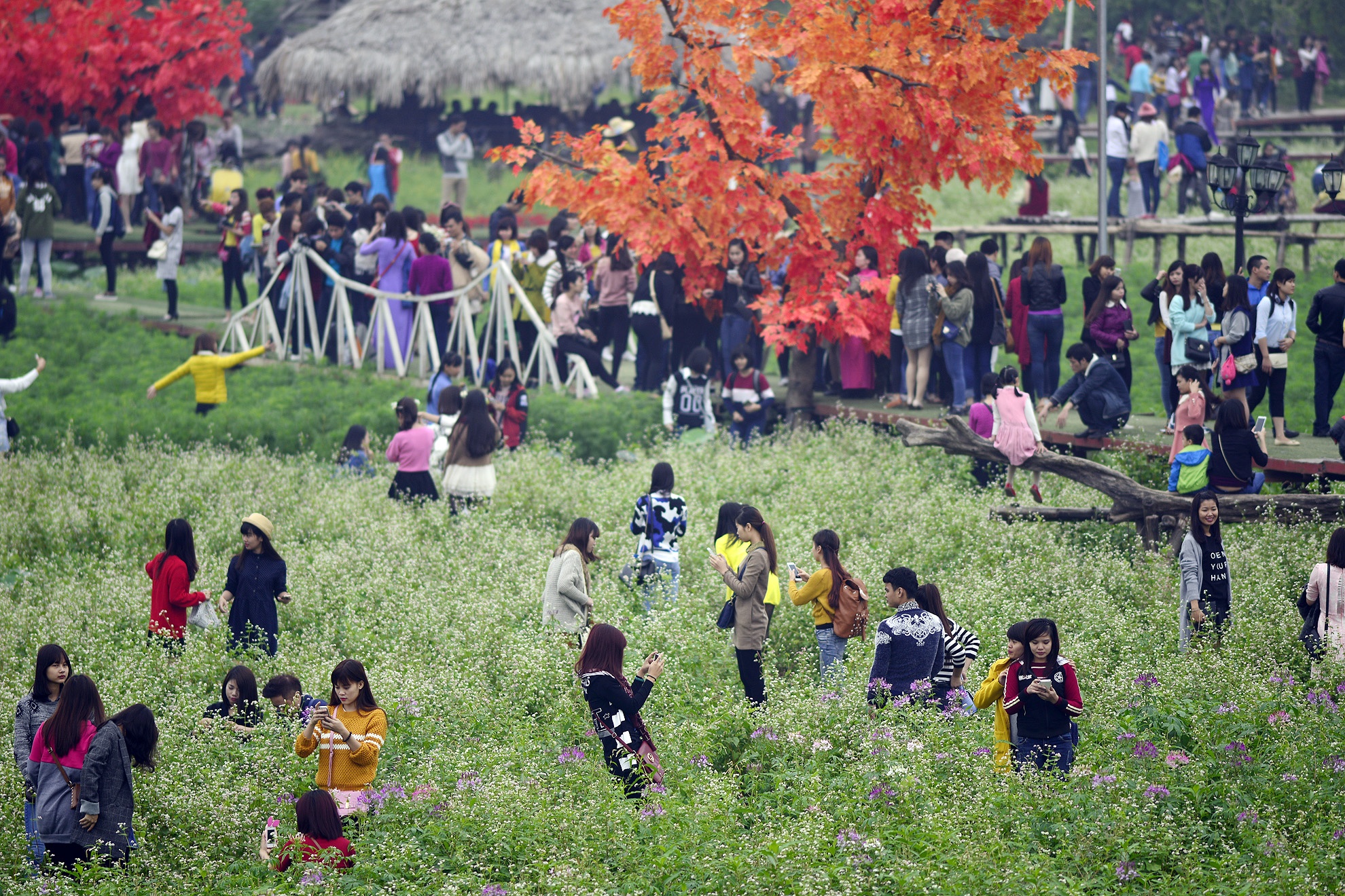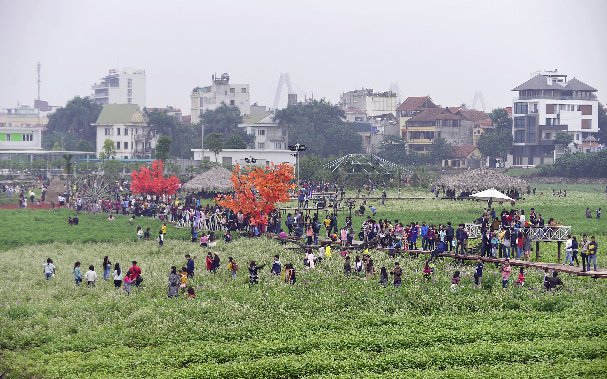 Thung lũng hoa hồ Tây được trồng thêm các loại Tam giác mạch, cải, ly và trang trí nhiều tiểu cảnh đẹp, khi mở cửa miễn phí đã thu hút hàng nghìn bạn trẻ đổ về dạo chơi.