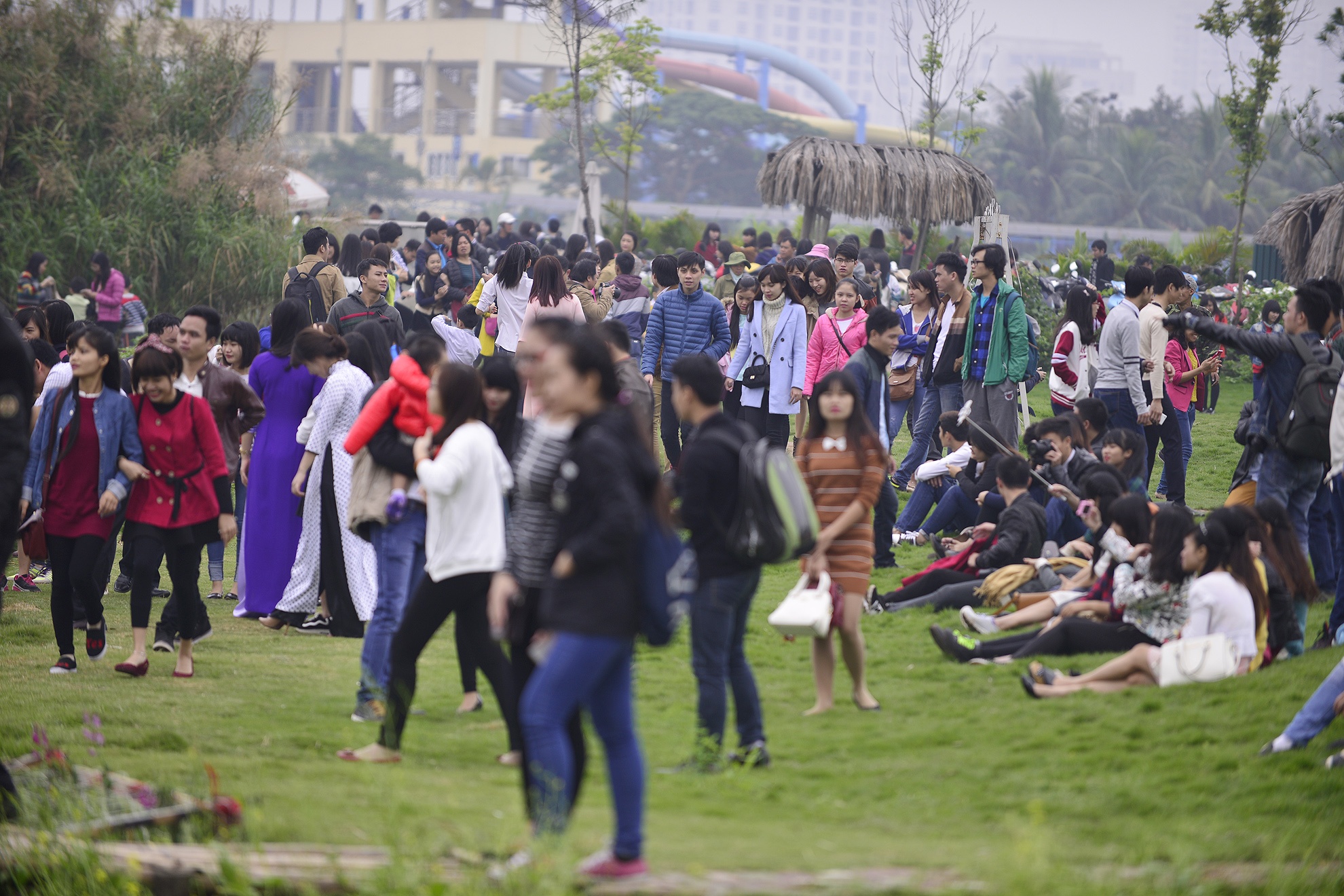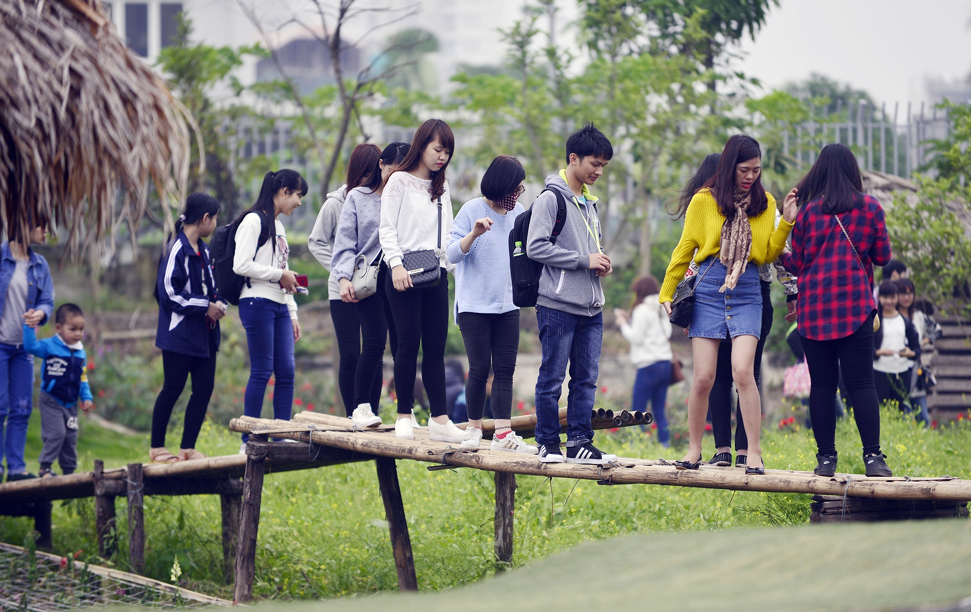 Các bạn trẻ thoải mái giẫm đạp lên hoa mà không bị chủ vườn nhắc nhở.