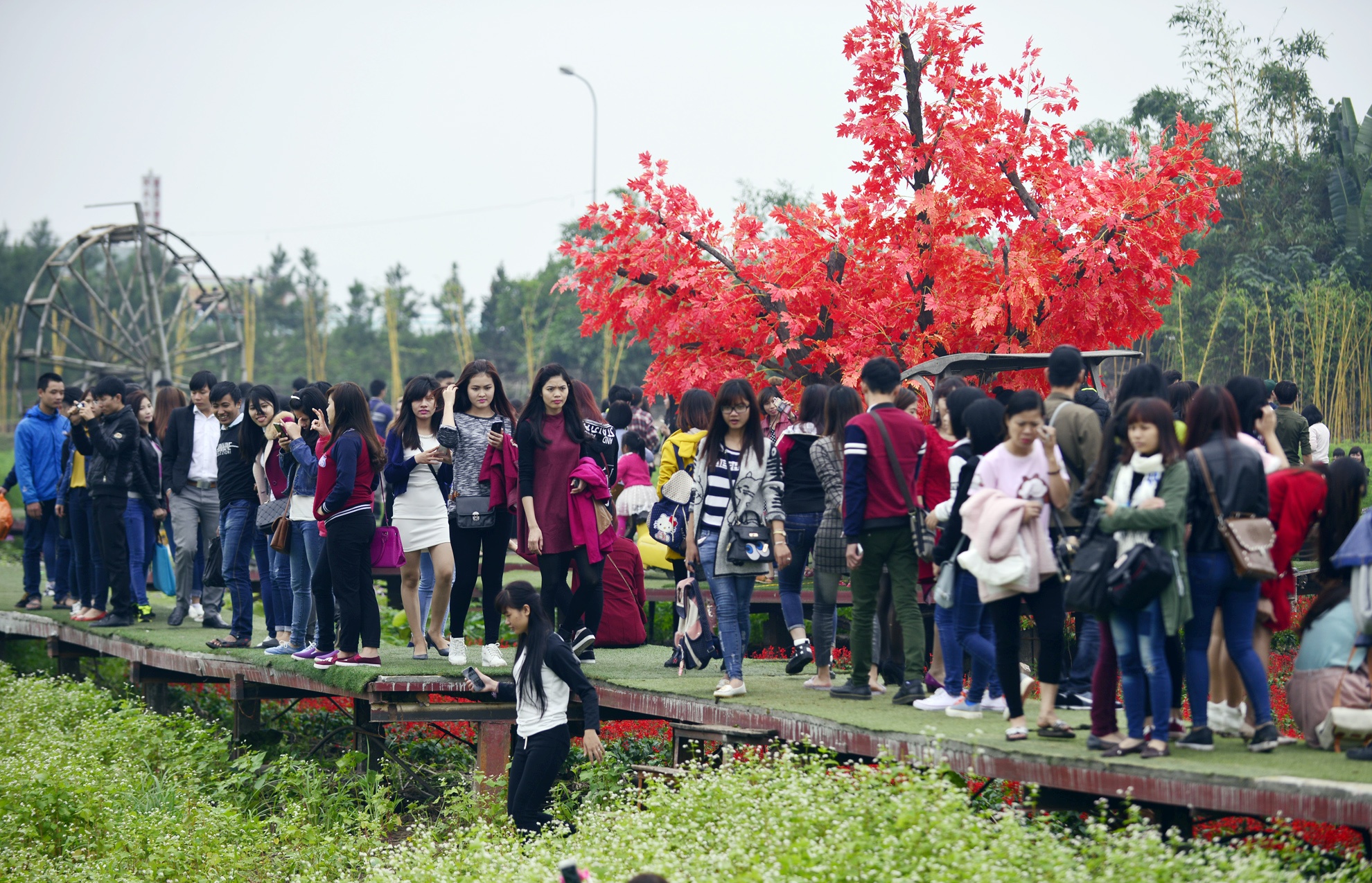 Chiều 28/11, thung lũng hoa hồ Tây mở cửa miễn phí cho khách hàng vào tham quan đã thu hút hàng nghìn bạn trẻ tới dạo chơi.