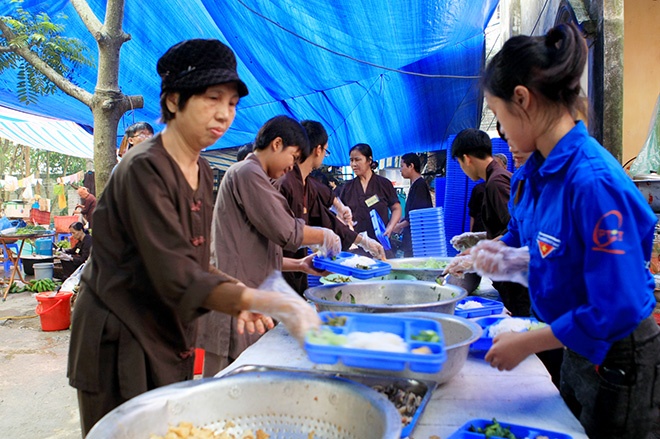 | Buổi lễ kéo dài trong suốt ba ngày từ 8 đến hết 10/11. Nhà chùa đã làm 2500 suất cơm chay phục vụ người dân từ nhiều nơi đổ về trưa nay. |