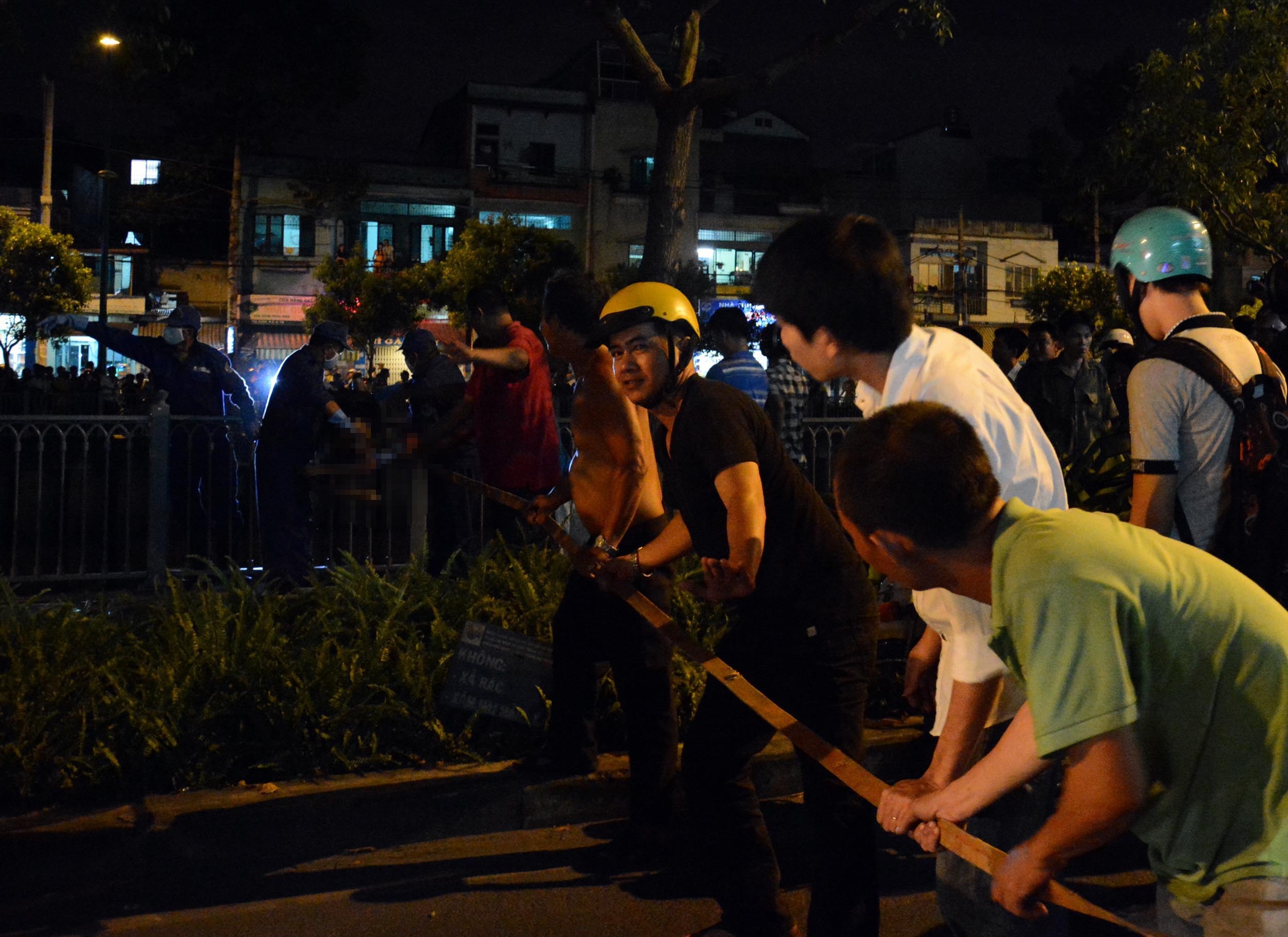 | Đến 18h, lực lượng chức năng phải dùng thuyền đi một đoạn dài đến gần cầu số 3 để tiến hành vớt xác. |