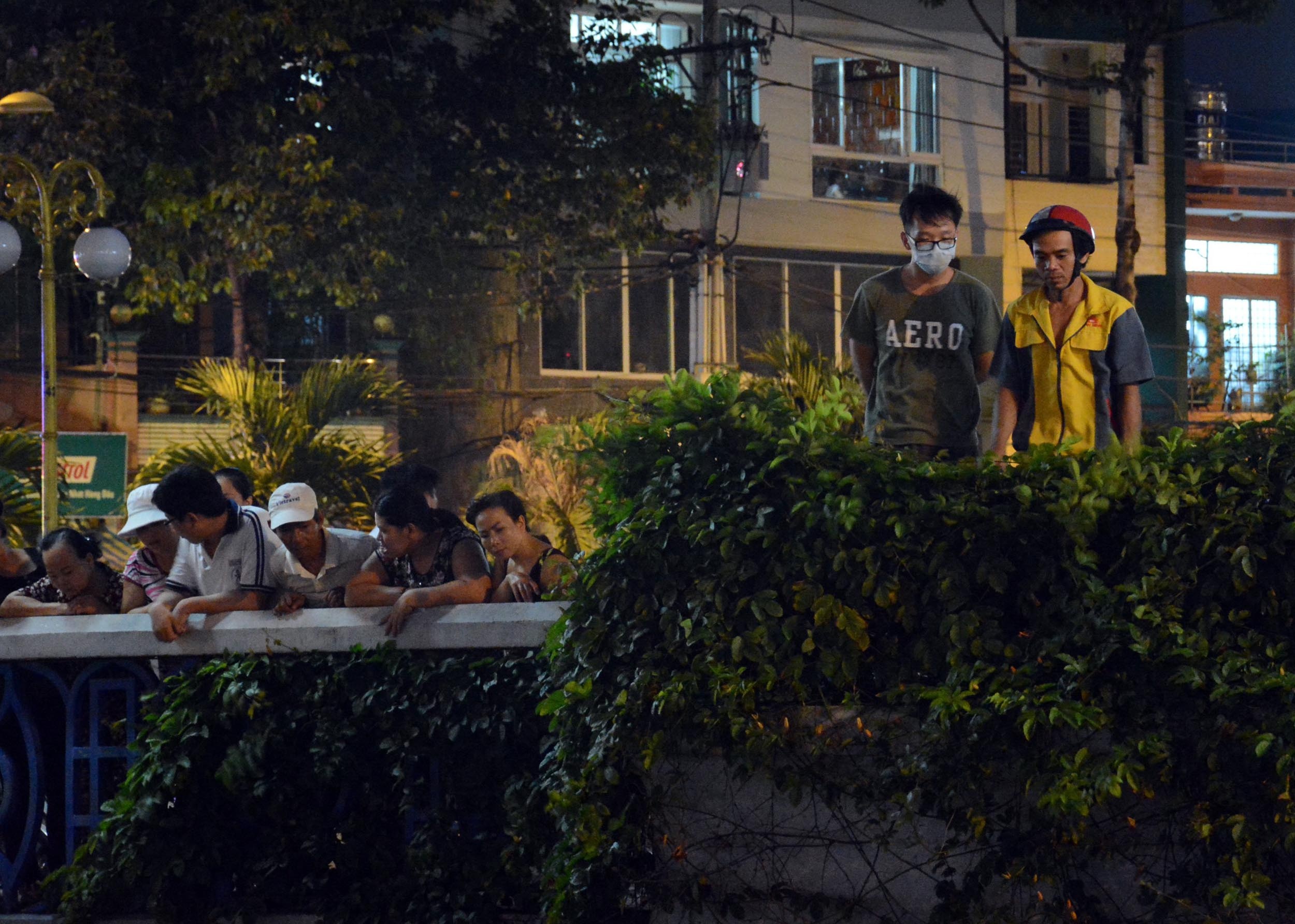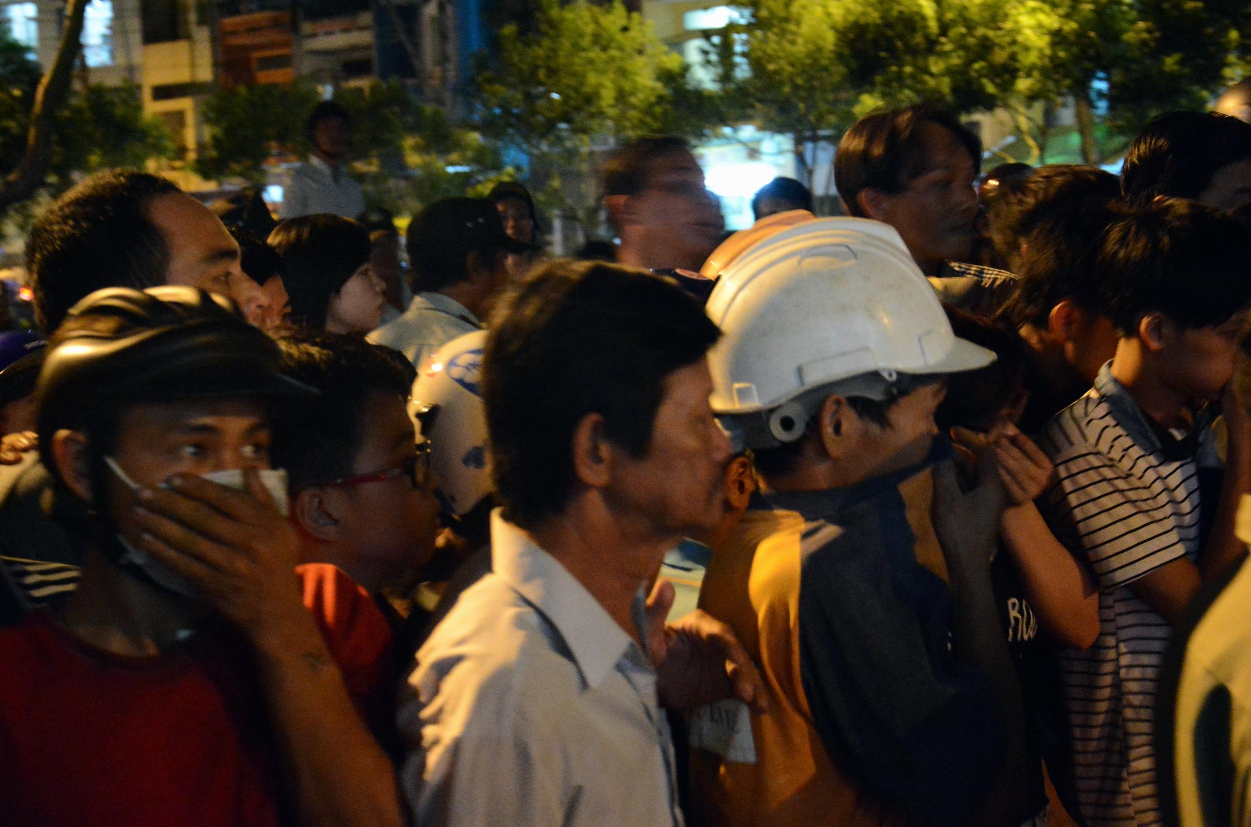 | Nhiều người đeo khẩu trang để đứng được lâu quan sát tình hình. |