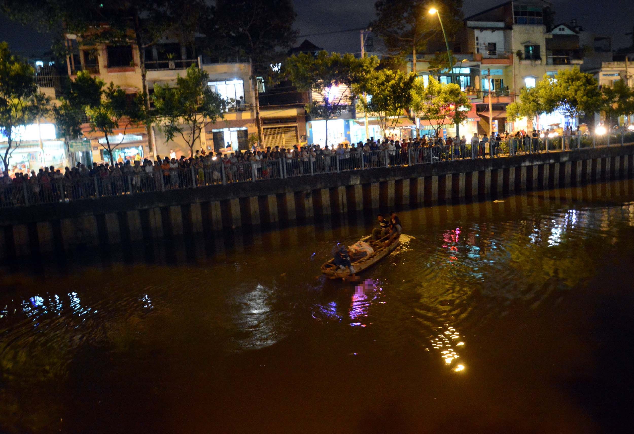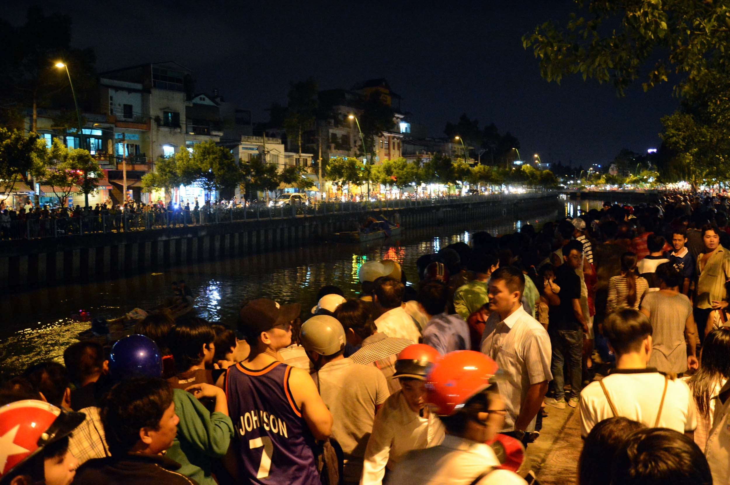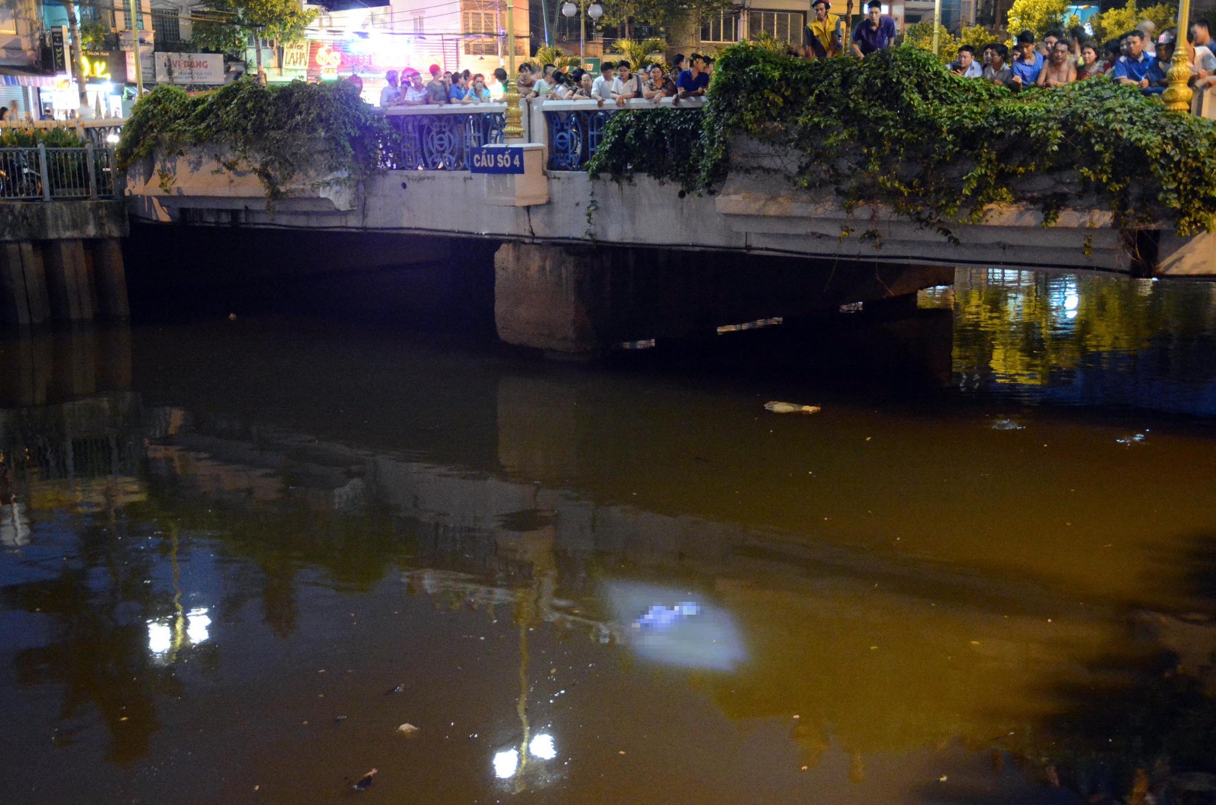 | Theo người dân hai bên kênh Nhiêu Lộc - Thị Nghè đoạn giữa cầu số 6 và số 5 (chạy qua phường 14, quận Phú Nhuận, TP.HCM), trong lúc một số người đang câu cá ở đoạn kênh này (khoảng 17h) thì phát hiện xác chết của một người đàn ông mặc áo sọc xanh trôi lềnh bềnh giữa dòng nước đen đang dâng. |