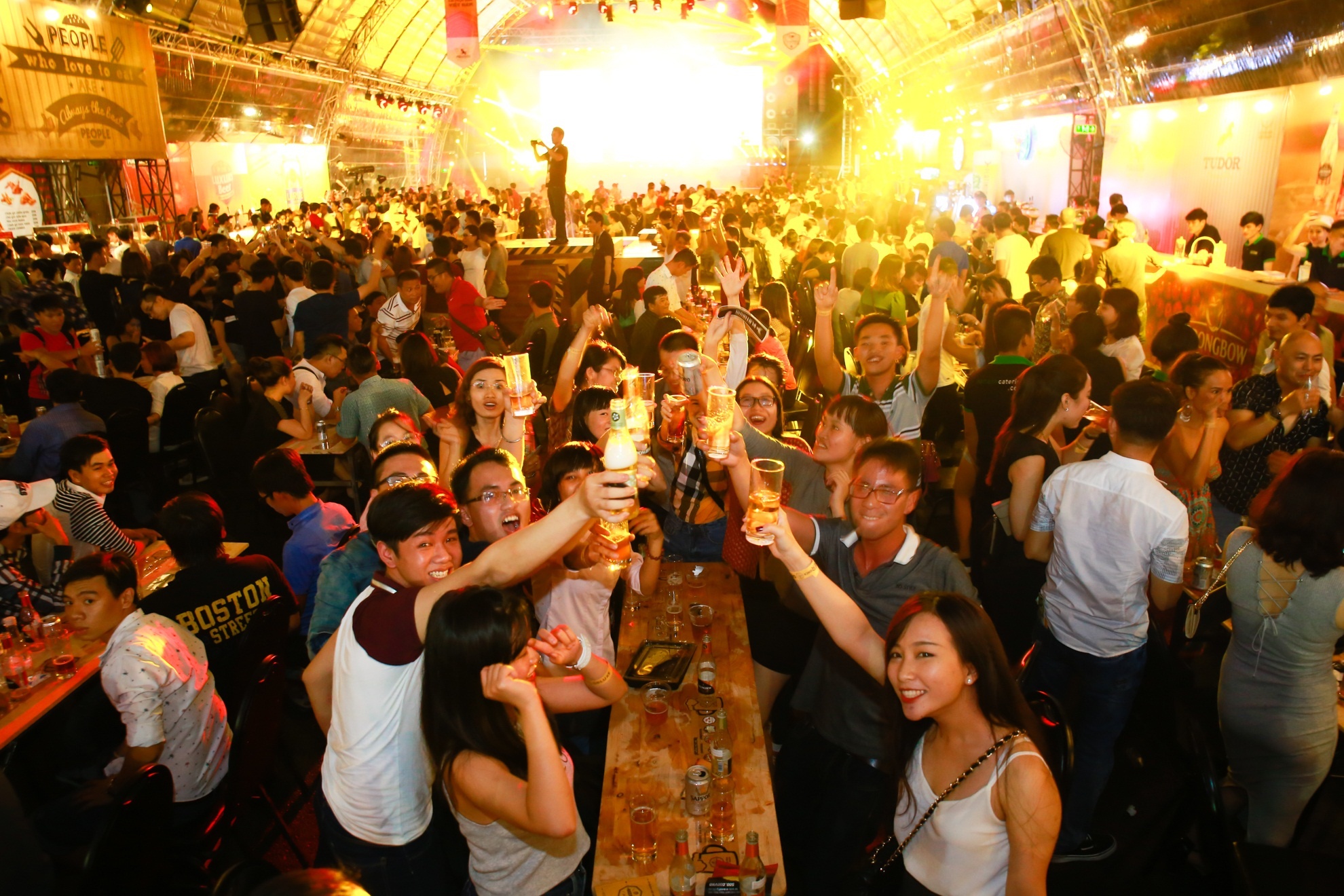 | Bạn trẻ hào hứng uống các dòng bia tươi, bia lon hay chai tùy khẩu vị. Nếu không đủ tỉnh táo sau khi trải qua 55 loại bia, người mua vé VIP có 500 suất Grab Car đưa về tận nhà, để vừa chơi thoải mái, vừa đảm bảo an toàn. |