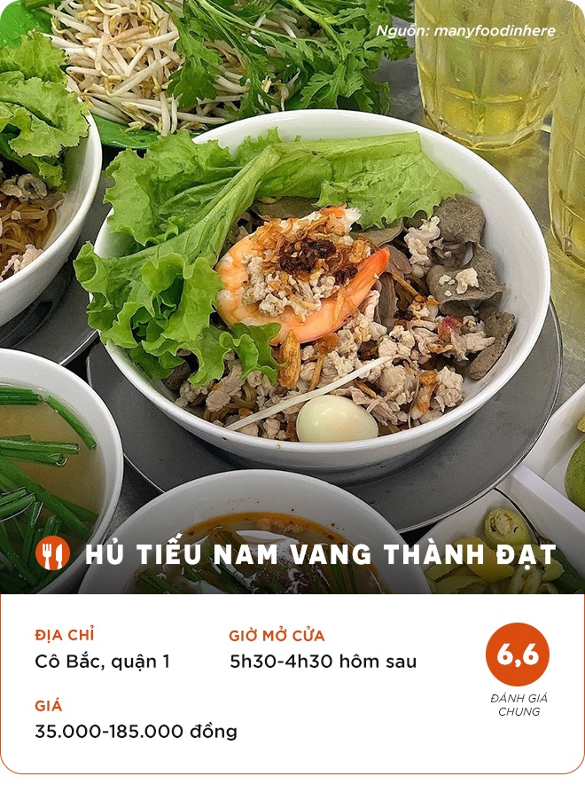 Minnie Pham: “Mình được bạn giới thiệu cho chỗ này. Gửi xe ở gần đó, không gian bên trong ngồi hơi khó chịu. Tuy nhiên, quán nằm ở quận 1, giá rẻ và đồ ăn cũng ngon nên chấp nhận được. Một phần ở đây khá nhiều, có thịt bằm, thịt nạc, tôm, đồ lòng, ngó sen ngâm chua, ăn một tô đủ no tới chiều. Sợi hủ tiếu khô trộn với nước sốt nên vị đậm đà. Nước lèo hơi ngọt, phải vắt nhiều chanh, chung quy vẫn ổn, ăn với rau sẽ đỡ ngán hơn”.
