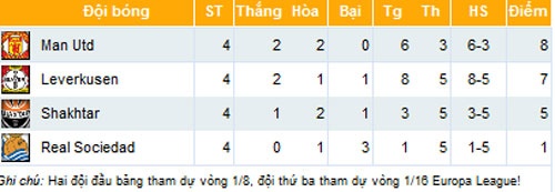 Ở trận còn lại của bảng A, cuộc đụng độ giữa Shakhtar Donetsk và Leverkusen cũng kết thúc với tỷ số hòa 0-0. Sau lượt trận thứ 4, vị trí của các đội ở bảng A không thay đổi khi đội xếp thứ 2 Levekusen được 7 điểm, và đội đứng thứ 3 Shakhtar Donetsk có 5 điểm.