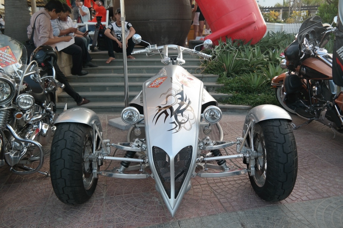 | Một chiếc môtô độ 3 bánh độc đáo của người chơi xe. |