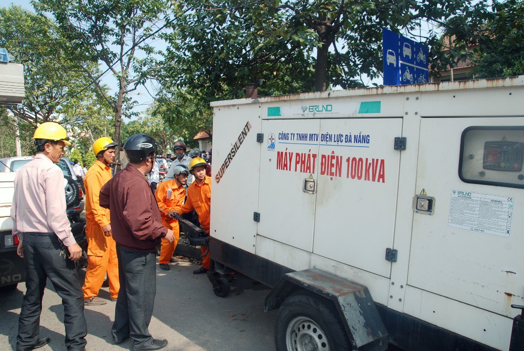 | Ngành điện lực Đà Nẵng điều động máy phát điện công suất lớn đến đảm bảo điện cho gia đình tổ chức tang lễ. |