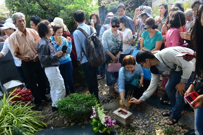 | Người hâm mộ thắp hương tại nghĩa trang Gò Dưa. |