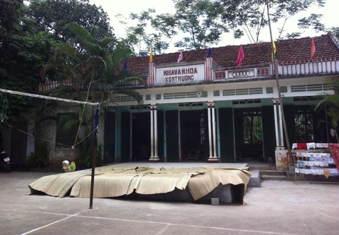 Điểm trường mầm non xã Yên Bình phải mượn Nhà văn hóa thôn Thuống từ nhiều năm nay. |