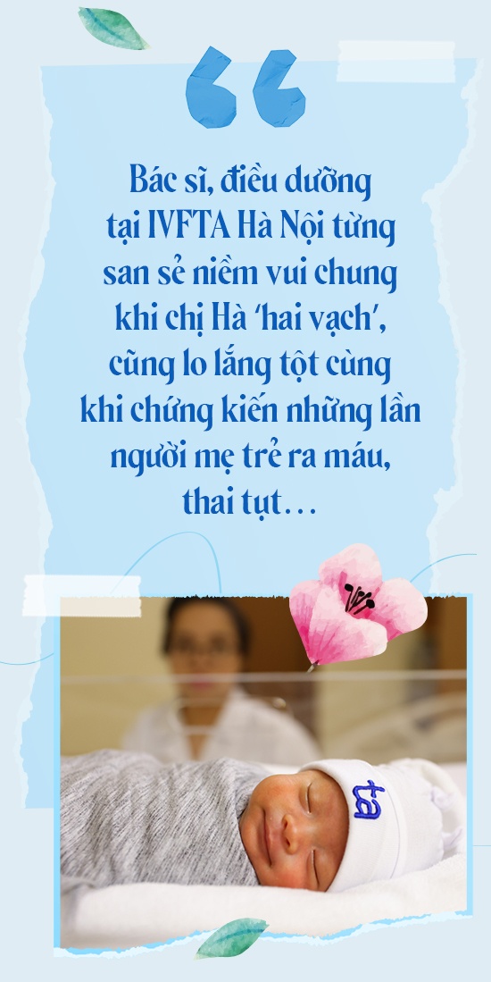 “Tâm Anh cho tôi cảm giác như ở nhà. Nhìn lại hành trình đã qua, tôi không thể quên cảm xúc luôn được bác sĩ hồi đáp khi gửi tin nhắn lo lắng, trăn trở. BS Thủy, BS Hạnh từng bày tỏ sự day dứt vì trường hợp của tôi quá khó và trường kỳ. Hay BS Hieng coi tôi như em gái, ghé thăm khi tôi đẻ và động viên bằng vật chất, gia đình tôi rất xúc động”, chị Hà tâm sự.