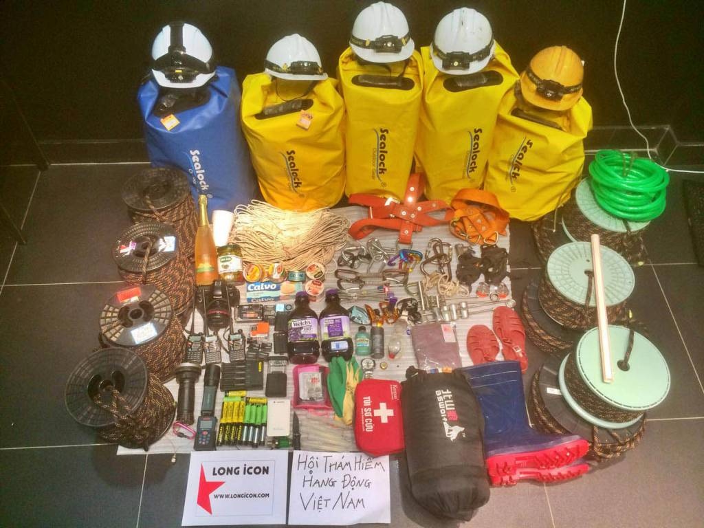 Long và đồng đội luôn chú ý móc neo dự phòng, bọc ống nước bên ngoài dây neo, bảo vệ dây không cà vào đá. Đồ thám hiểm và dây thừng chuyên dụng chịu lực 2 tấn luôn được đeo quanh người nhóm Ngũ Hổ mọi lúc, mọi nơi. |