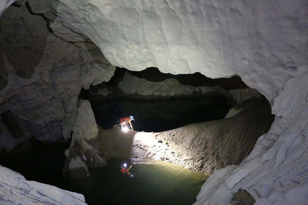Hai nhà thám hiểm trẻ Long và Công khảo sát tình hình xung quanh trong lúc các đồng đội khác nghỉ ngơi, phát hiện thấy hồ nước sâu không thấy đáy. Đó chính là nơi họ khui nút chai rượu, kết thúc chuyến hành trình lần thứ 2 của nhóm vài tháng trước. Chuyến đi này diễn ra hồi tháng 4/2015. Những ngày đầu năm 2016, anh đang chinh phục hang Cống Nước (Lai Châu), nơi được coi là hang sâu nhất Việt Nam. |
