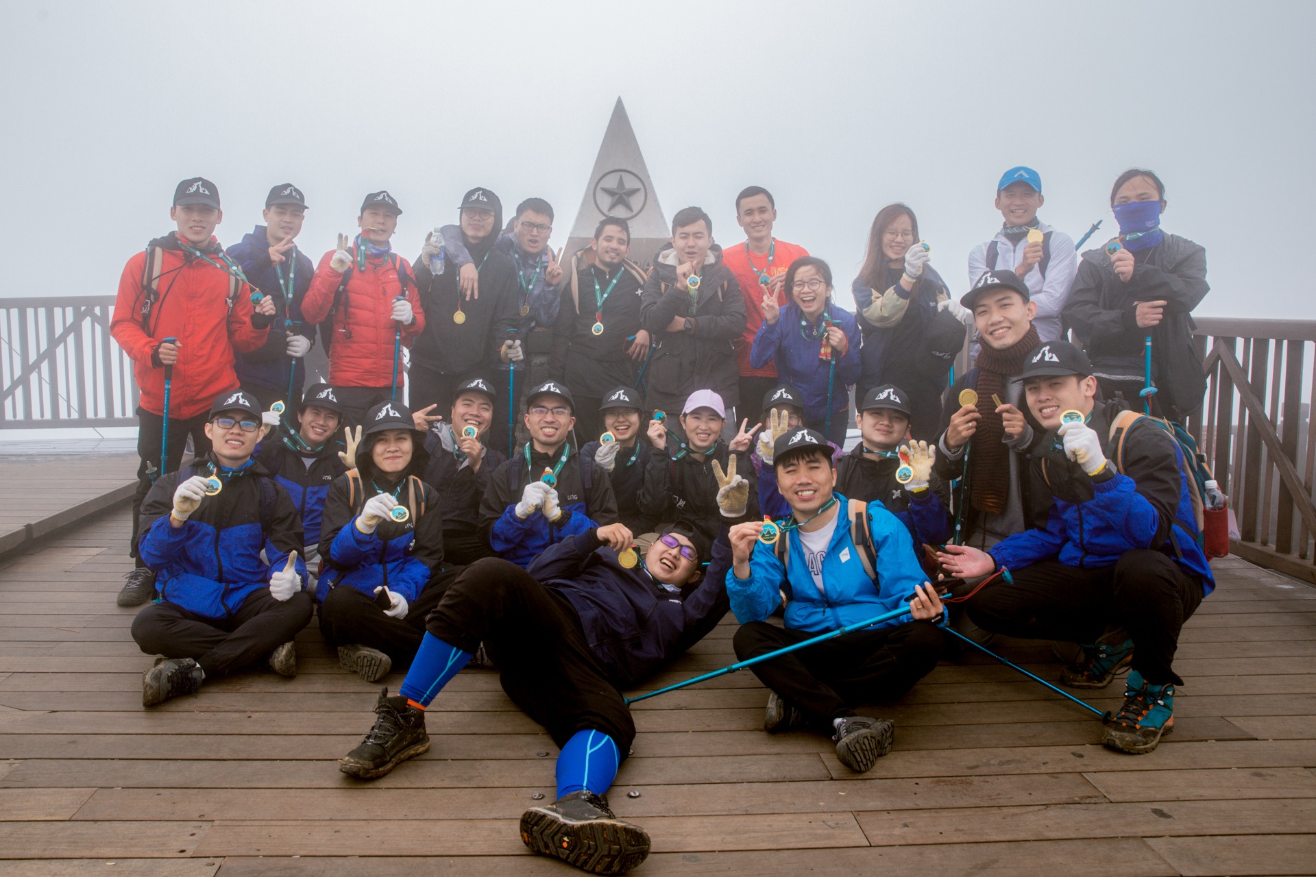 Sau gần 9 tiếng chinh phục, 150 kỹ sư công nghệ Zalo đã chạm mốc 3.143 m của đỉnh Fansipan. Họ được đeo lên mình huy chương về đích, phất lá cờ Tổ quốc và tràn đầy cảm giác tự hào.