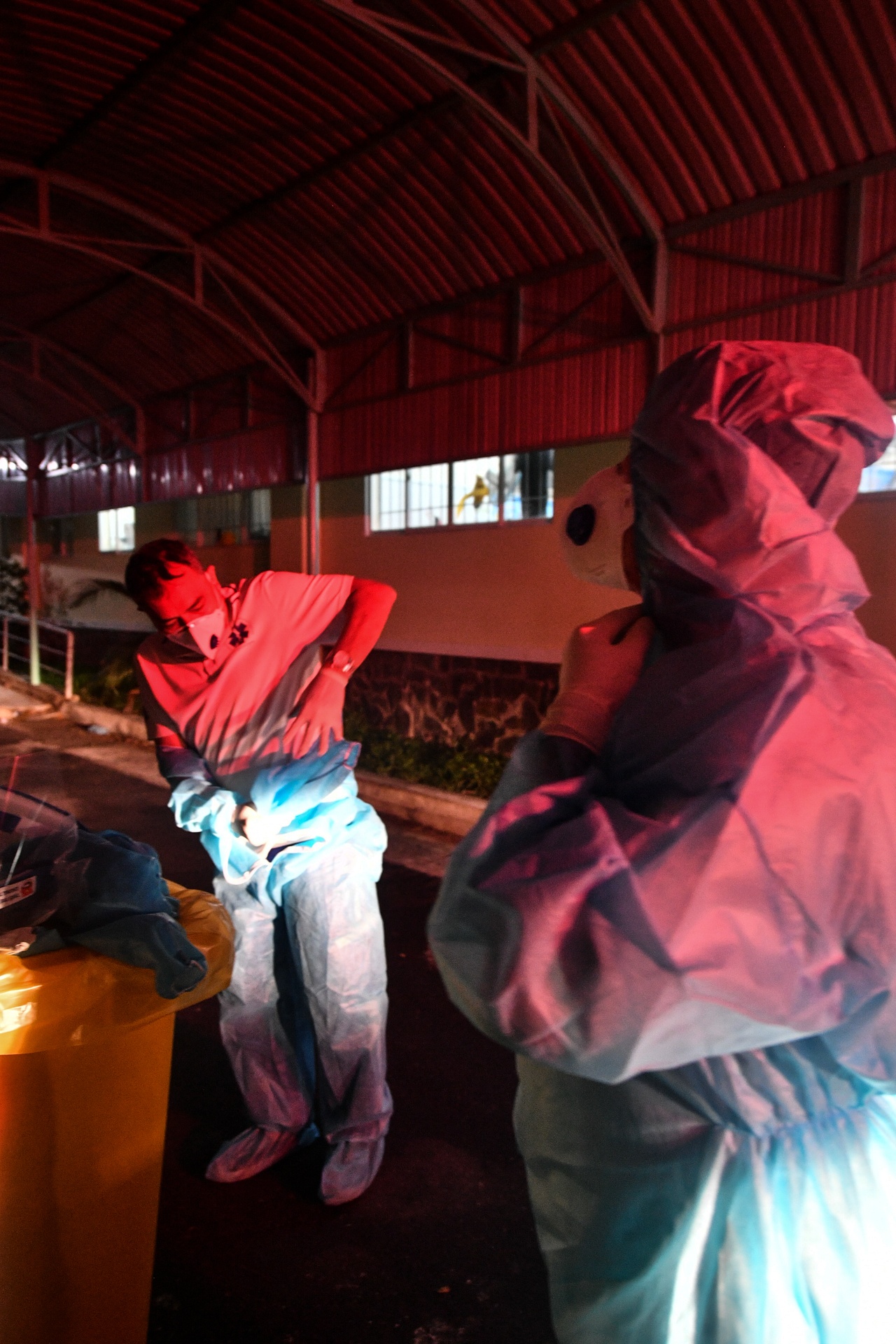 | Chúng tôi cảm giác như sống lại khi tháo bộ đồ bảo hộ sau hơn 3 giờ mặc nó ngồi trên ôtô. |