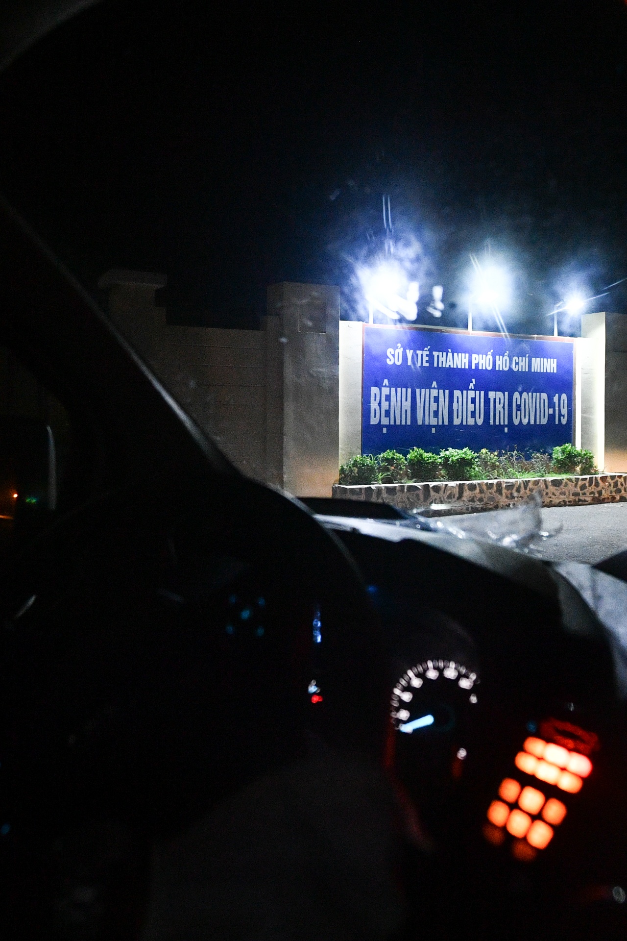 | Gần 21h, mất hơn 3 giờ để chúng tôi đến được Bệnh viện Điều trị Covid-19 Cần Giờ. Bệnh viện có quy mô hơn 300 giường bệnh, đang là một trong số ít những nơi chuyên điều trị Covid-19 của TP.HCM. |