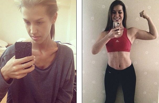 | Antonia Eriksson sử dụng mạng chia sẻ hình ảnh Instagram như một động lực để cô thúc đẩy quá trình phục hồi thể chất một cách nhanh nhất. Cụ thể, càng muốn trở nên xinh đẹp trên Instagram bao nhiêu thì cô lại càng phải học cách ăn uống đầy đủ và luyện tập thể thao nhiều bấy nhiêu. Hình ảnh cho thấy thân hình cò hương của Antonia Eriksson trong những ngày mới bắt đầu đăng tải hình ảnh lên mạng xã hội. |