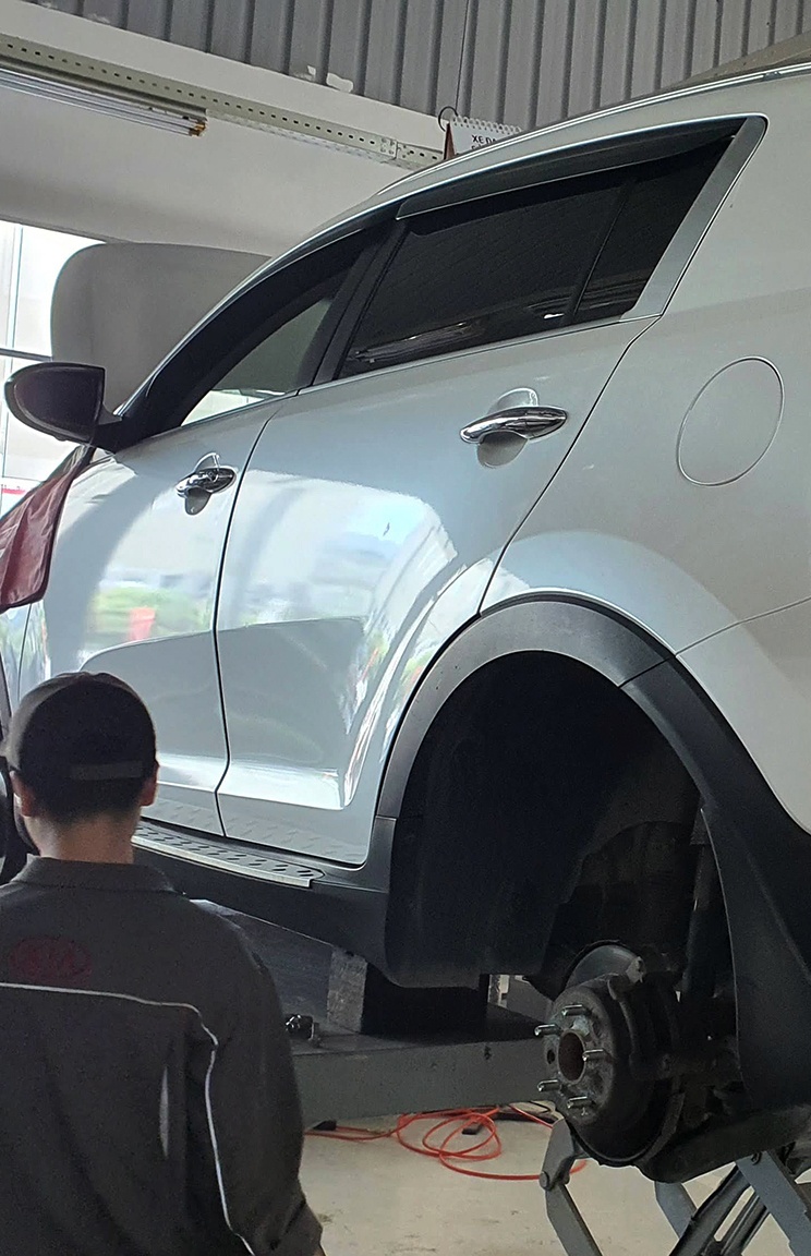 | Sau 4 tháng sử dụng, tôi mang xe tới hãng để bảo dưỡng. Thợ sửa ôtô ở đây phát hiện ra lỗi bó cứng phanh ở bánh sau bên phải. Giải pháp là phải láng đĩa phanh và thay piston dầu phanh. |