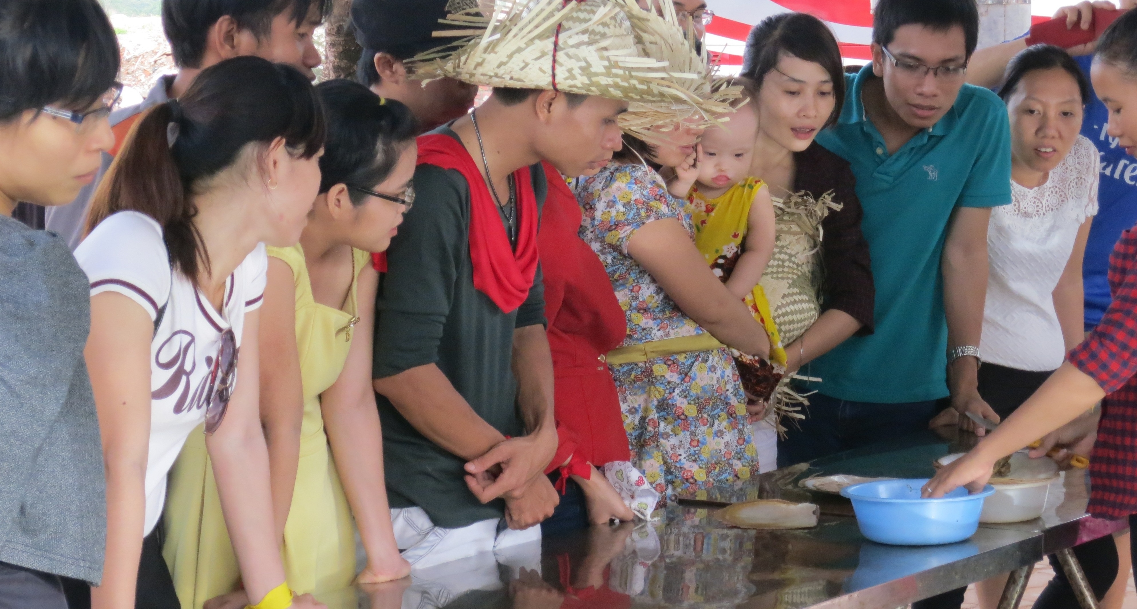| Mọi người rất thích thú với lần đầu xem cách mổ lấy ngọc trai. |