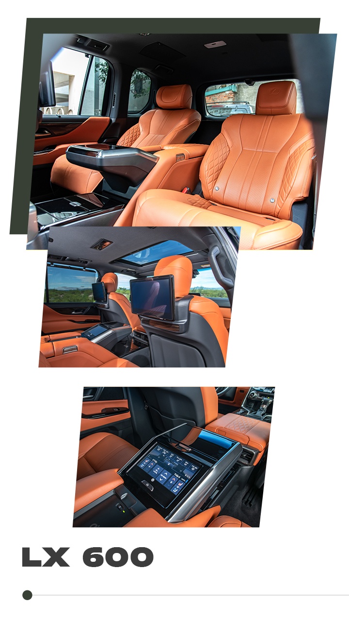 Lexus hiểu nhu cầu của khách hàng thay đổi từng ngày, nên với LX 600, hãng mong muốn đáp ứng đầy đủ yếu tố người dùng mong muốn, đem đến những trải nghiệm sang trọng riêng biệt. Có thể nói, LX 600 đang tạo ra xu hướng dẫn đầu trong các cuộc phiêu lưu của những ông chủ quyền lực, cho họ hưởng thụ và toát lên vẻ tự tin một cách tĩnh lặng đích thực. Không đơn giản là một phương tiện di chuyển, LX 600 còn mang đến sự thăng hoa cho mọi giác quan.
