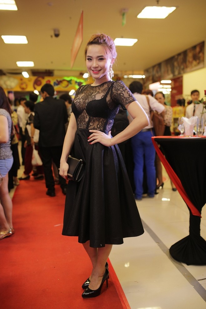 | Mới đây nhất, tại buổi ra mắt phim Cô dâu nổi loạn tối 3/12 tại cụm rạp Lotte, TP.HCM, nữ ca sĩ “Viên đá nhỏ” khiến nhiều người không rời mắt nhìn khi diện váy ren xuyên thấu lộ nội y táo bạo. |