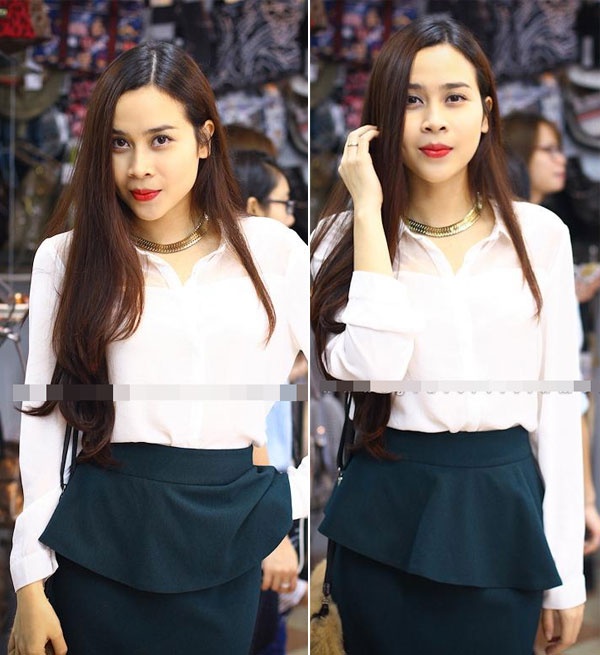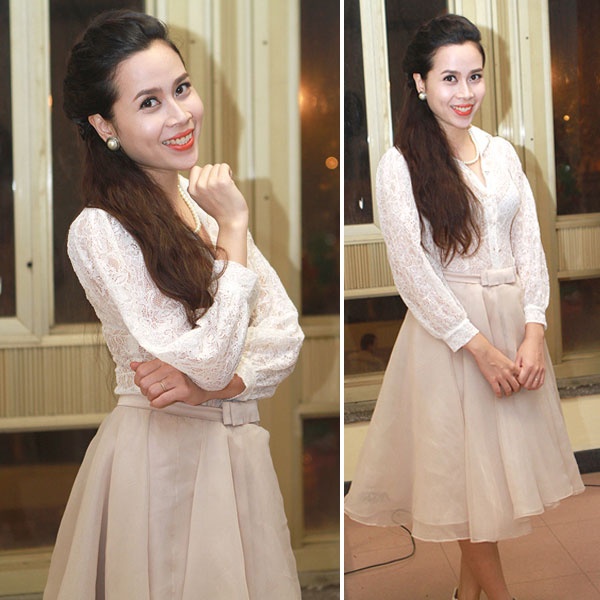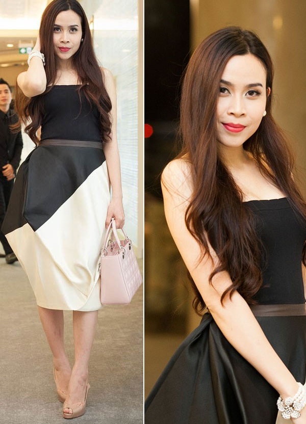 | Chiếc váy này trông Lưu Hương Giang rất thanh lịch như một quý cô công sở sành điệu. |