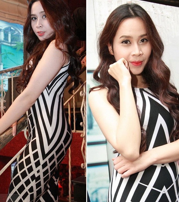 Lưu Hương Giang phô diễn đường cong trong chiếc váy kẻ sọc trắng đen.