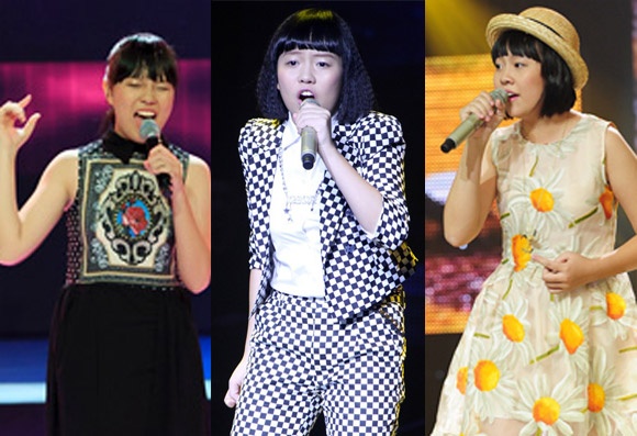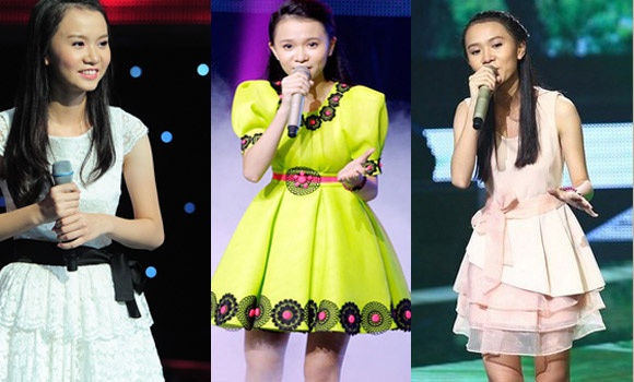 | Linh Lan thay đổi từ hình ảnh buổi đầu năng động với váy jupe hồng và sơmi trắng sang điệu đà, rực rỡ với váy voan xòe xếp tầng, áo tay bồng vàng rực. Tuy vậy, trong phần thi liveshow đêm 17/8, cô bé lại chọn phong cách cá tính và ấn tượng với bộ suit trắng mặc cùng áo váy đính sequin. |