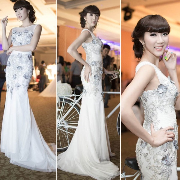 | Xinh đẹp yêu kiều lộng lẫy trong chiếc váy ren dài thướt tha. |
