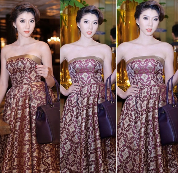 | Váy cô mặc điệu đà và nhã nhặn hơn. |
