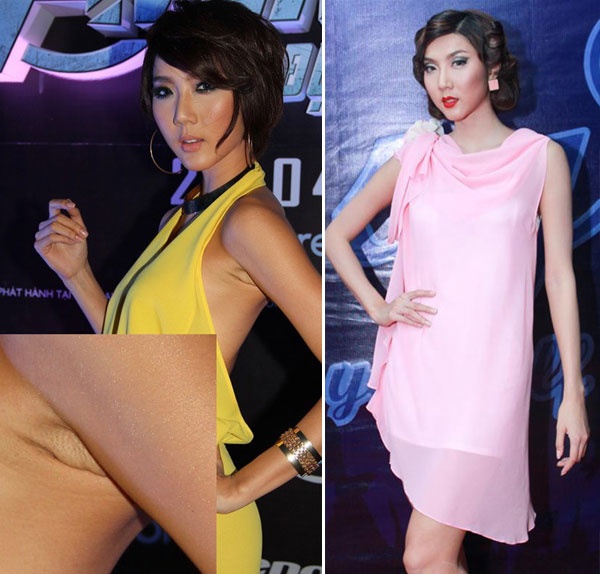 | Các bộ trang phục Ngọc Quyên diện vừa diêm dúa vừa quê. Mặt trang điểm thiếu vẻ đẹp tự nhiên khiến cô già hơn mặc dù khi đó Ngọc Quyên căng tràn sức sống của tuổi đôi mươi. |