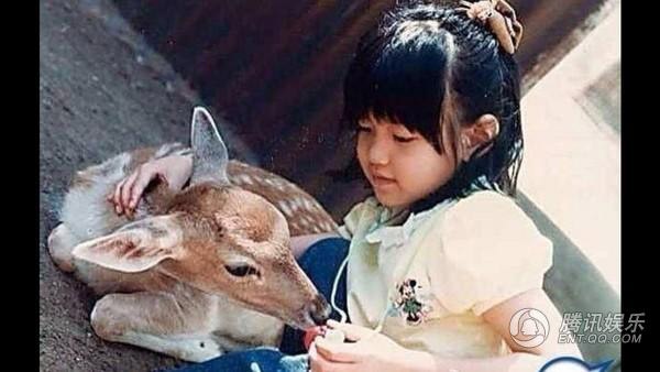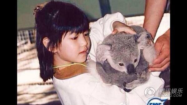 Ngay từ nhỏ, Trần Nghiên Hy đã rất đáng yêu với gương mặt tròn trĩnh và đôi mắt biết nói. Trong ảnh, cô để tóc mái bằng, tóc buộc gọn gàng về phía sau, lúc thì vuốt ve chú hươu sao, lúc lại ôm ấp gấu kaola.
