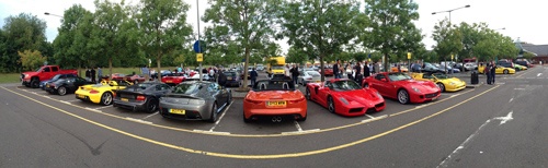 Không lâu sau khi rời khỏi London, đoàn siêu xe đã tới điểm dừng chân đầu tiên. Tại đây, các siêu xe nổi tiếng như Lamborghini Gallardo Spyder Performante, Ariel Atom V8, Ford GT… Âm thanh phát ra từ những khối động cơ V8, V10 và V12 khiến đoạn đường ồn ào hơn rất nhiều, cảm giác như một buổi hòa nhạc đang diễn ra trên xa lộ.