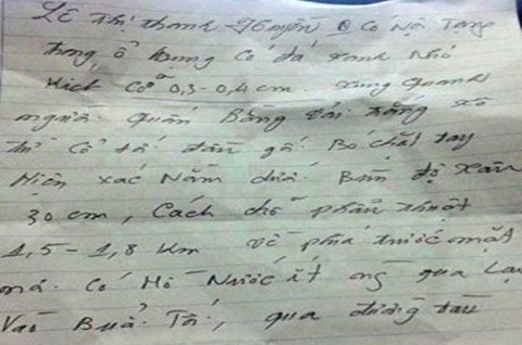 | "Bức thư lạ" chỉ dẫn tìm thi thể nạn nhân lan truyền trên mạng. |