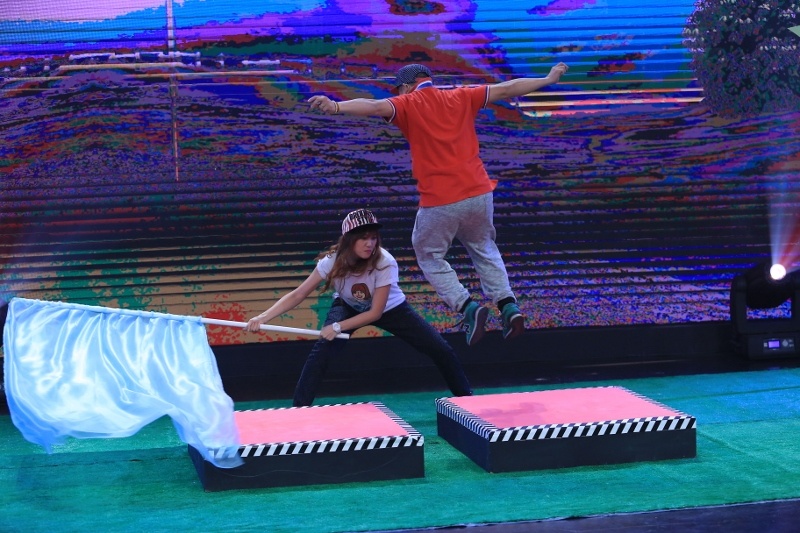 Đến vòng nhảy qua dải lụa, MC Trấn Thành yêu cầu Hari Won đặt cược để Đinh Tiến Đạt tham gia trò chơi. Tuy nhiên, bạn gái người Hàn Quốc của rapper cá tính chỉ đưa ra con số 6 trong khi chương trình yêu cầu mức cược tối thiểu là 10. Với lý do, chân bạn trai quá ngắn nên Hari định "ngồi chơi xơi nước". |