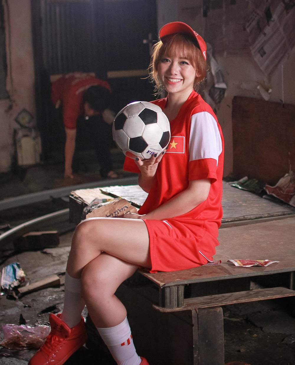 | Trong những hình ảnh hậu trường vừa được tiết lộ của phim Ma Dai, người đẹp xứ Hàn hóa thân thành cầu thủ nổi tiếng Công Phượng. Trong phim, Thánh Nữ là fan cuồng của cầu thủ trẻ câu lạc bộ Hoàng Anh Gia Lai. Khi có cơ hội biến thành người phàm trần, Thánh Nữ tự biến mình thành phiên bản nữ của nam cầu thủ. |